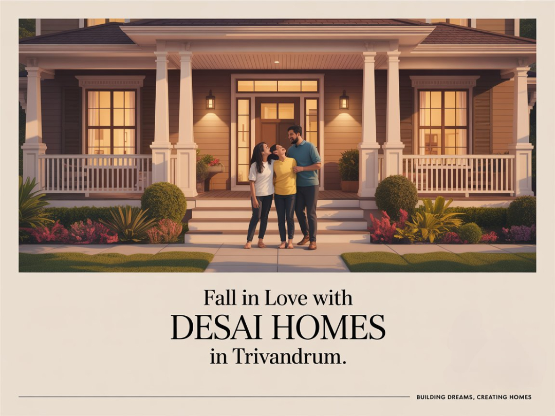 Welcome to Desai Homes, where your dream of owning a perfect home becomes a reality. As one of the leading real estate developers and builders in Kerala, we take pride in crafting exquisite living spaces that embody elegance, quality, affordability and comfort. Every construction project is undertaken with the utmost inspection and care, ensuring every detail is meticulously executed to exceed your expectations. We embrace cutting-edge technologies to create homes that stand the test of time, doing our part for sustainability and innovation. Everything we do is centred on delivering excellent & exceptional customer service. We are aware that a house is more than simply a building; it is also your safe space, where cherished memories are created. We go above and beyond to offer personalised solutions that are catered to your needs. Discover a range of thoughtfully designed projects in Kochi, Kottayam, Thiruvalla, Trivandrum, and Thrissur, each boasting top-notch amenities, easy accessibility, prime locations, and worth every penny. We have something to suit every lifestyle and budget. Come, find the perfect abode for you and your loved ones with Desai Homes. Experience the epitome of luxury, functionality, and serenity with us.