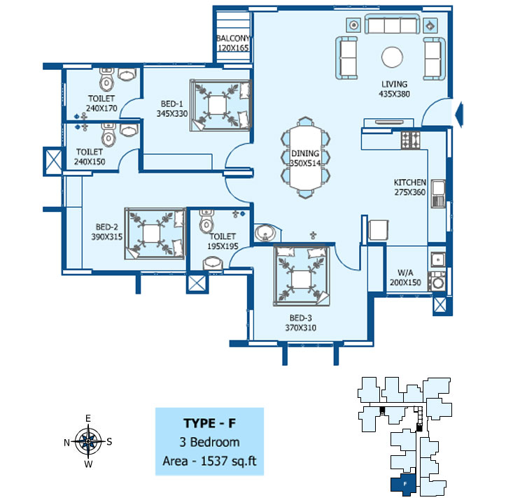 16 Amps plug point - 5 points per 3 BHK flat and 4 points per 2 BHK flat including Geyser point all toilets.