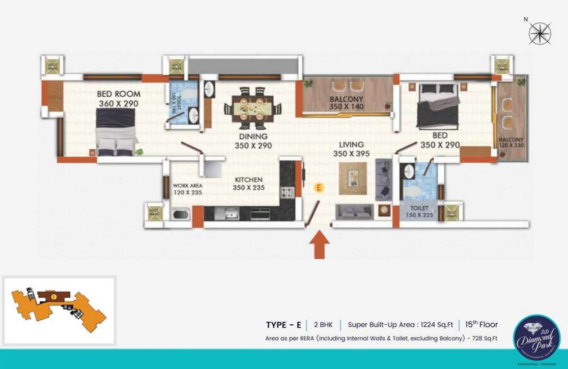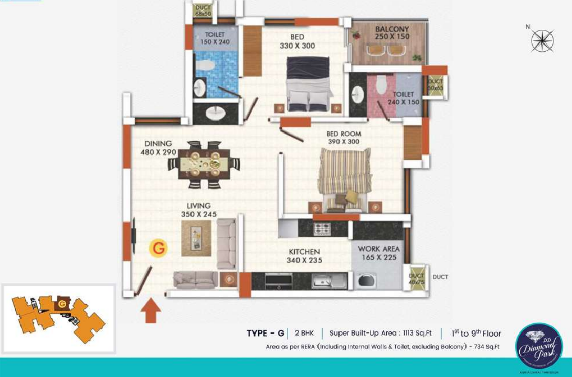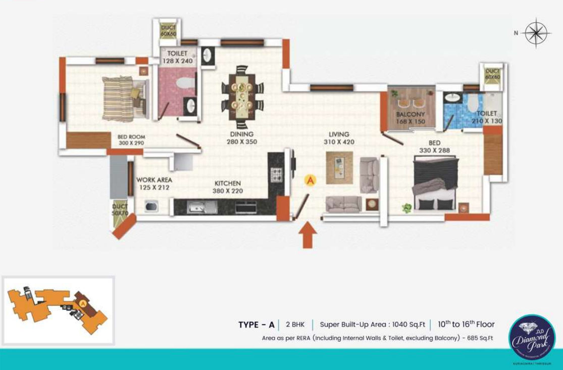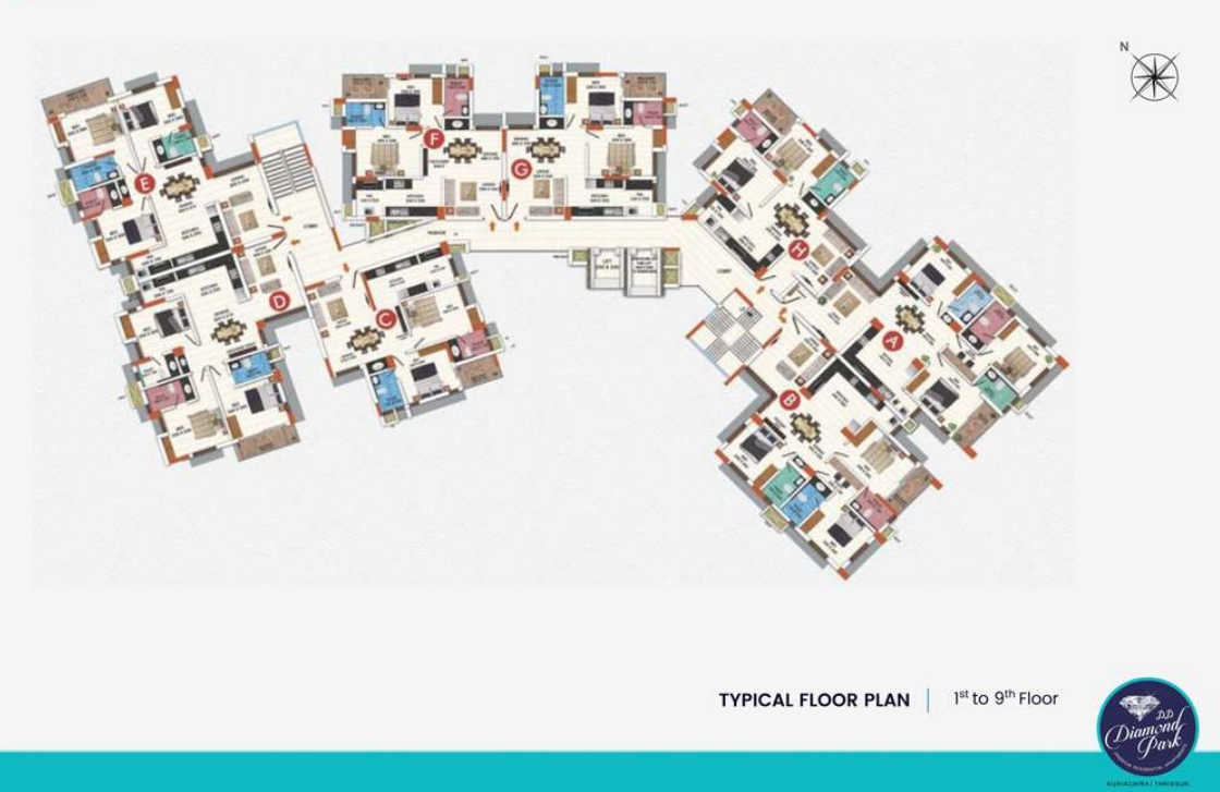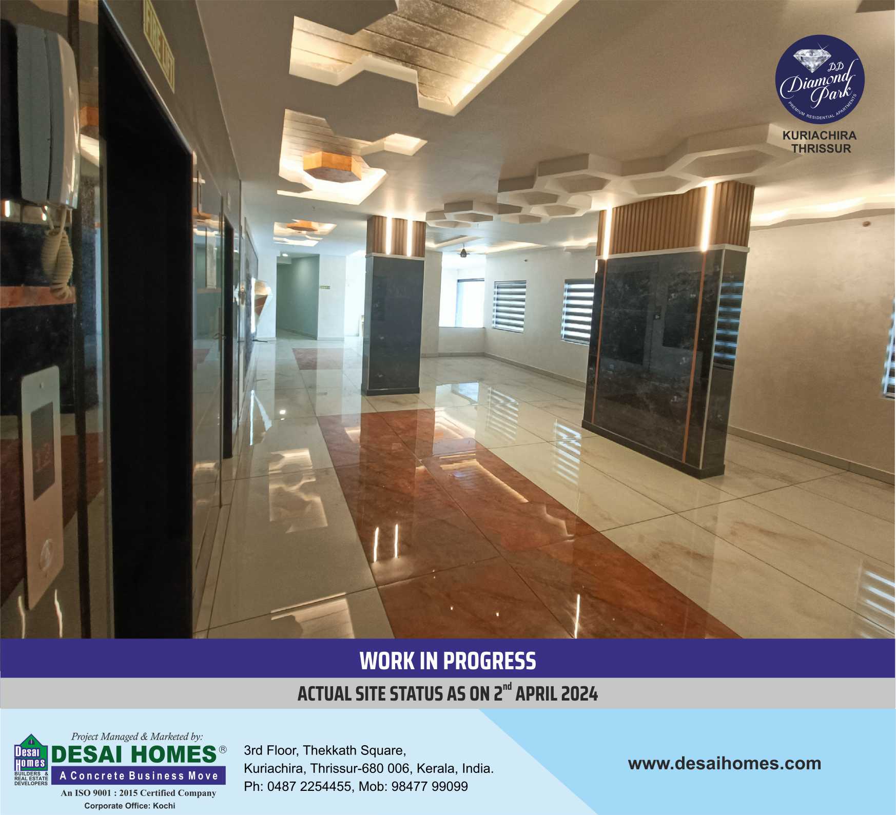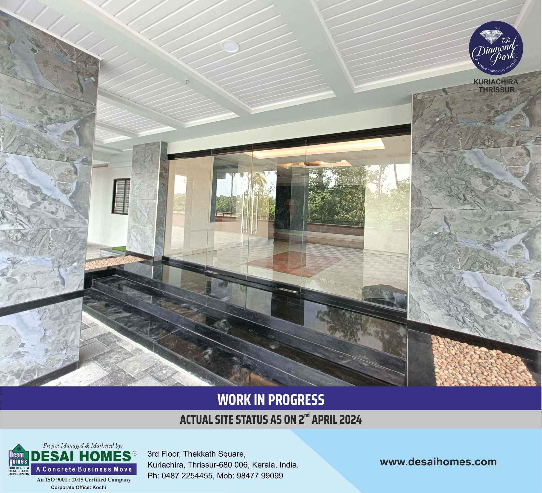 With the new launch of DD Diamond Park, Desai Homes bring to you the experience of a premium lifestyle alongside the calmness and serene beauty of nature. Located at Kuriachira, one of the posh residential areas in Thrissur, DD Diamond Park offers you exquisite living with world-class amenities and every luxury you have ever yearned for. In an area of more than an acre, with 16 floors of 2 BHK, 3 BHK and Duplex apartments DD Diamond Park cocoons the best of everything you have desired. Experience the eternal golden status of premium living at DD Diamond Park.