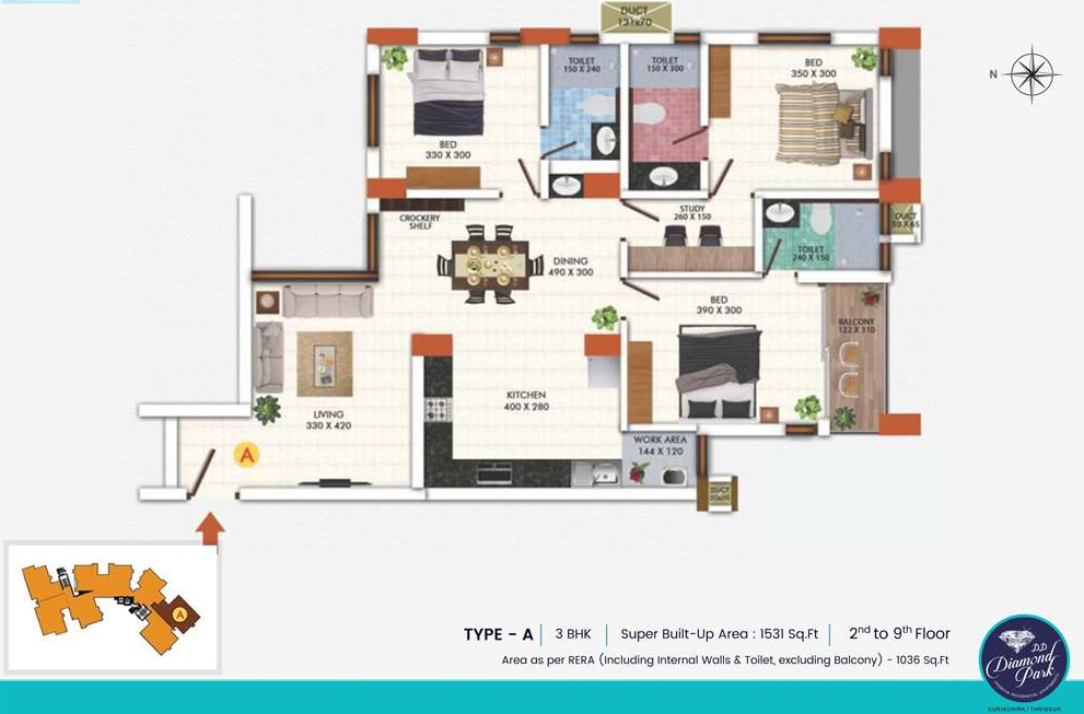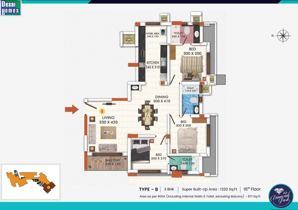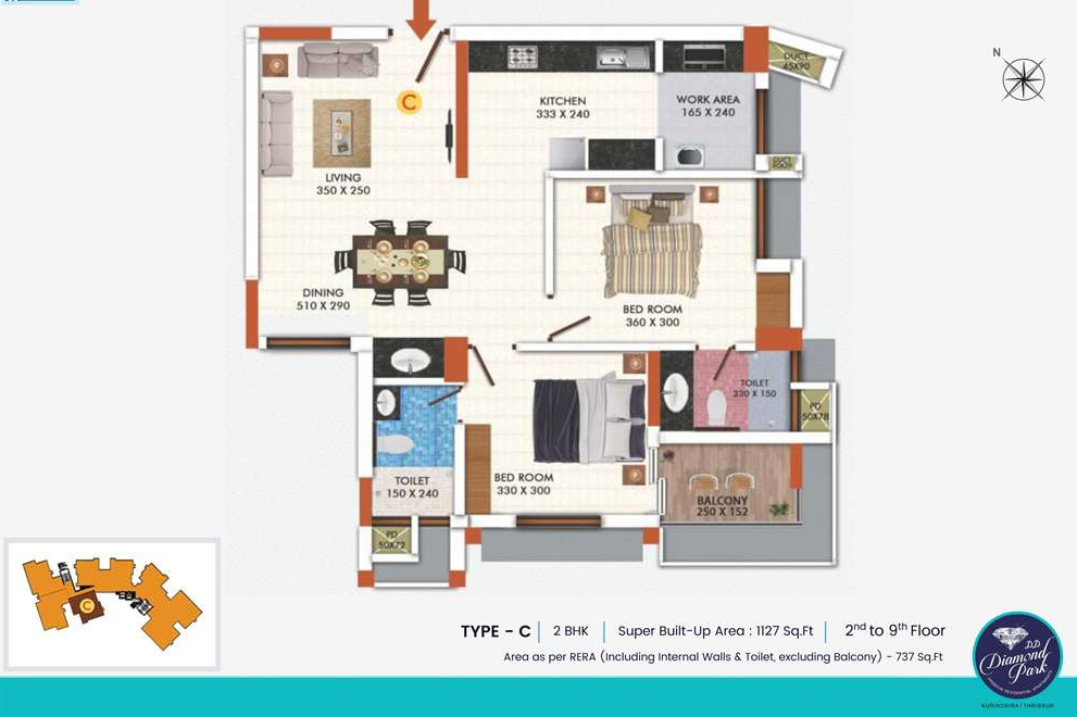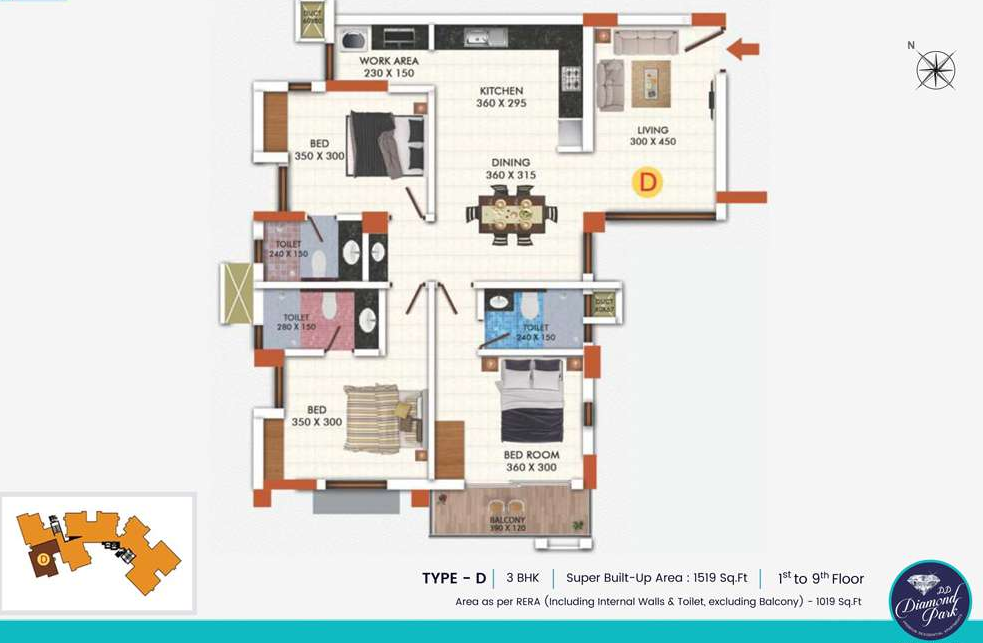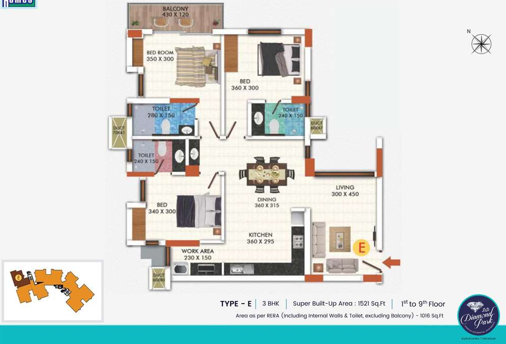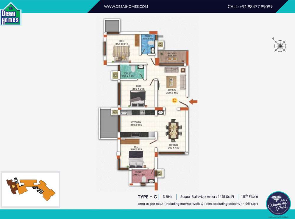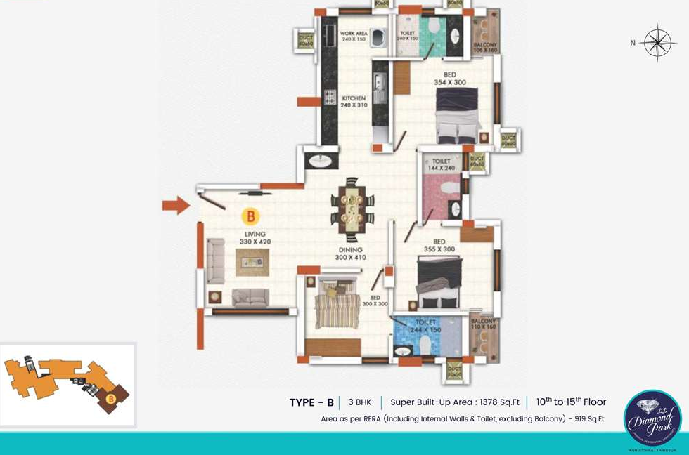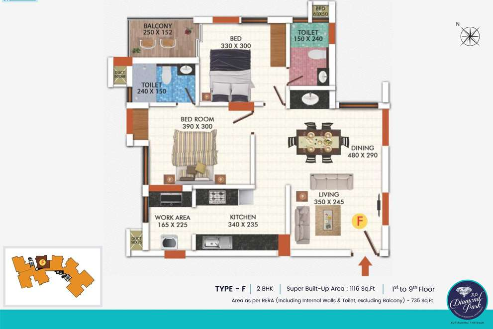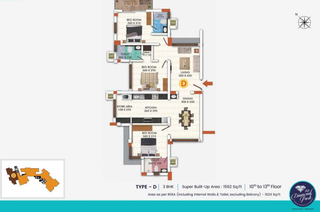 With the new launch of DD Diamond Park, Desai Homes bring to you the experience of a premium lifestyle alongside the calmness and serene beauty of nature. Located at Kuriachira, one of the posh residential areas in Thrissur, DD Diamond Park offers you exquisite living with world-class amenities and every luxury you have ever yearned for. In an area of more than an acre, with 16 floors of 2 BHK, 3 BHK and Duplex apartments DD Diamond Park cocoons the best of everything you have desired. Experience the eternal golden status of premium living at DD Diamond Park.
