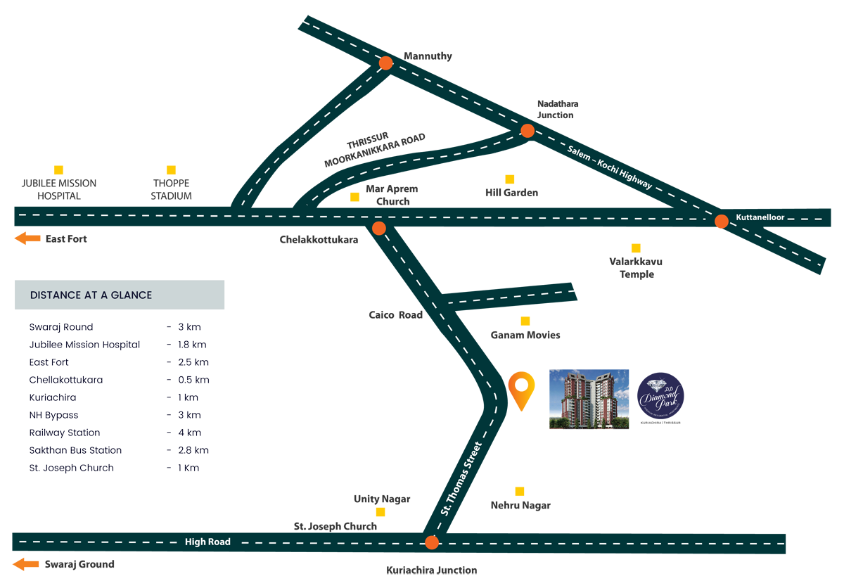Connectivity to Ernakulam-Palakkad Highway, proximity to Jubilee Mission Hospital, various educational institutions, and the amalgamation of cultural heritage all these make Kuriachira a prime spot and destination location for a premium lifestyle. The availability of natural water resources and its location away from flood areas and tropical climate adds favoring points to Kuriachira being most sought after as a residential area.