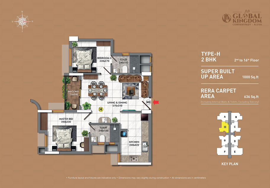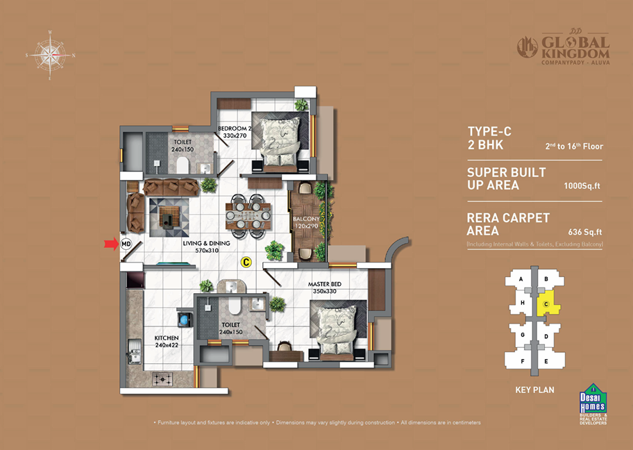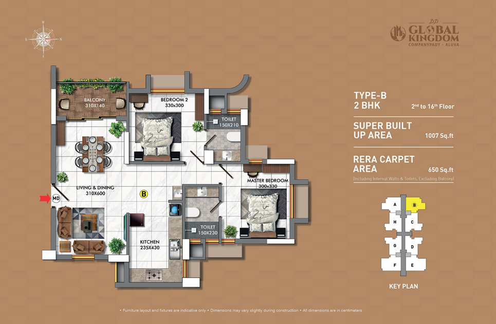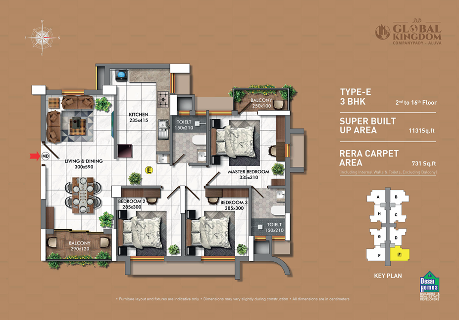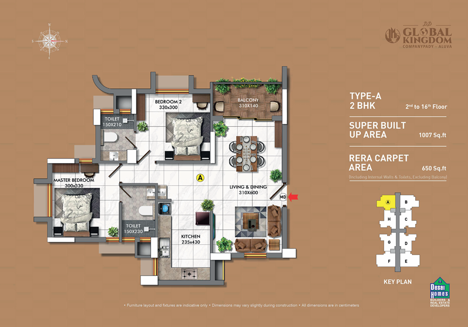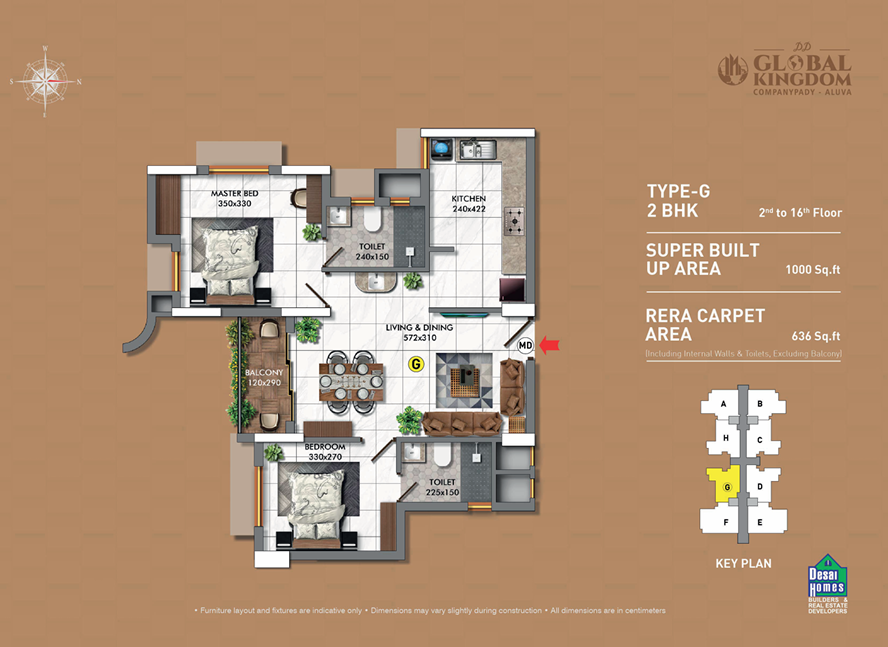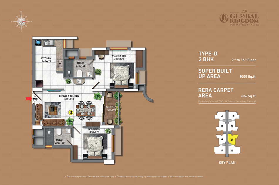 DD Global Kingdom is the latest landmark development by Desai Homes, crafted for those who thrive on the vibrant energy of city life. Located near the Companypady metro station in between Kalamassery and Aluva, the project offers all the conveniences of urban living within easy reach. Whether it's shopping, entertainment, or essential services, everything you need is just a short distance away. DD Global Kingdom offers you a total of 128 units of 2 & 3 BHK apartments that range from 1000 sq. ft. in a single tower with a basement, ground plus 16 floors. With thoughtfully designed homes and a host of modern amenities, including a fitness center and indoor game zones, DD Global Kingdom offers the perfect blend of serenity and urban practicality. This project is the ideal choice for individuals who embrace the dynamic, fast-paced lifestyle of the city while still enjoying the comfort and security of a well-managed community.