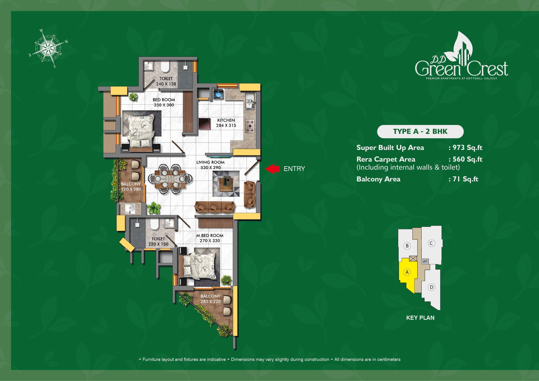 DD Green Crest offers beautifully designed 2&3 BHK apartments in Kottooli, Kozhikode that flawlessly blend comfort and elegance. Situated just 500 metres from Mavoor Road and 1.7 kilometres from Baby Memorial Hospital Junction, this luxury apartment boasts a fantastic location. Placed well away from the bustle of the city, the property offers easy access to all the city's facilities one could want.