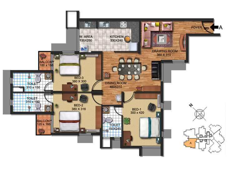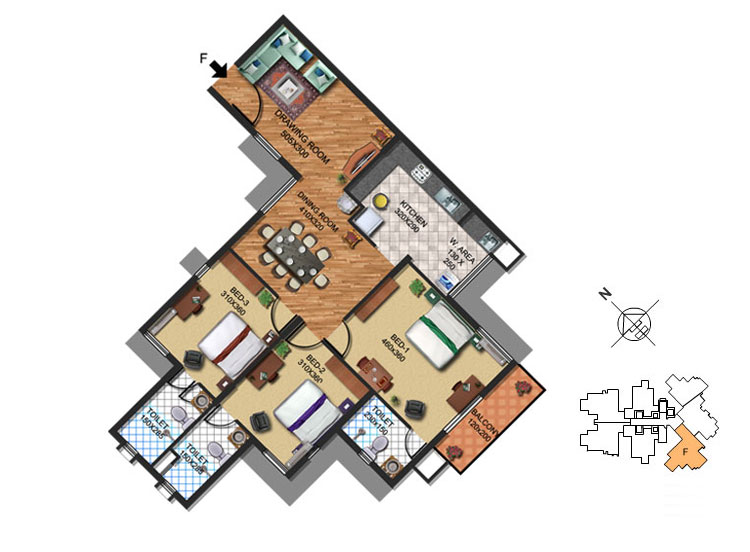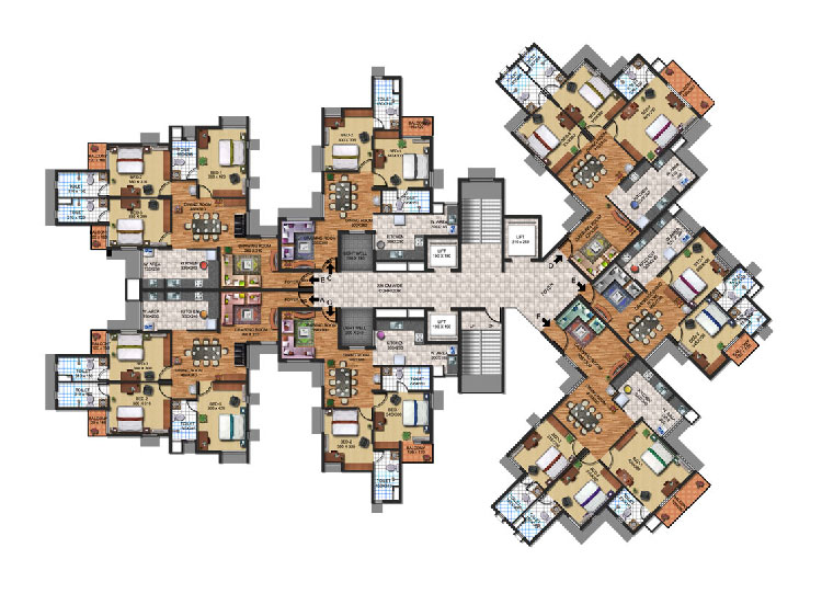 16 Amps plug point- 5 points per 3 BHK flat and 4 points per 2 BHK flat, including Geyser point in all toilets. (Additional Electrical points will be charged extra).