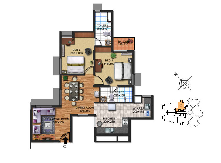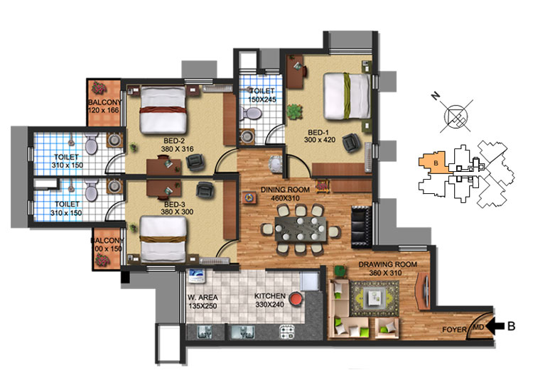 Fully Vitrified tiles except toilet and balconies.