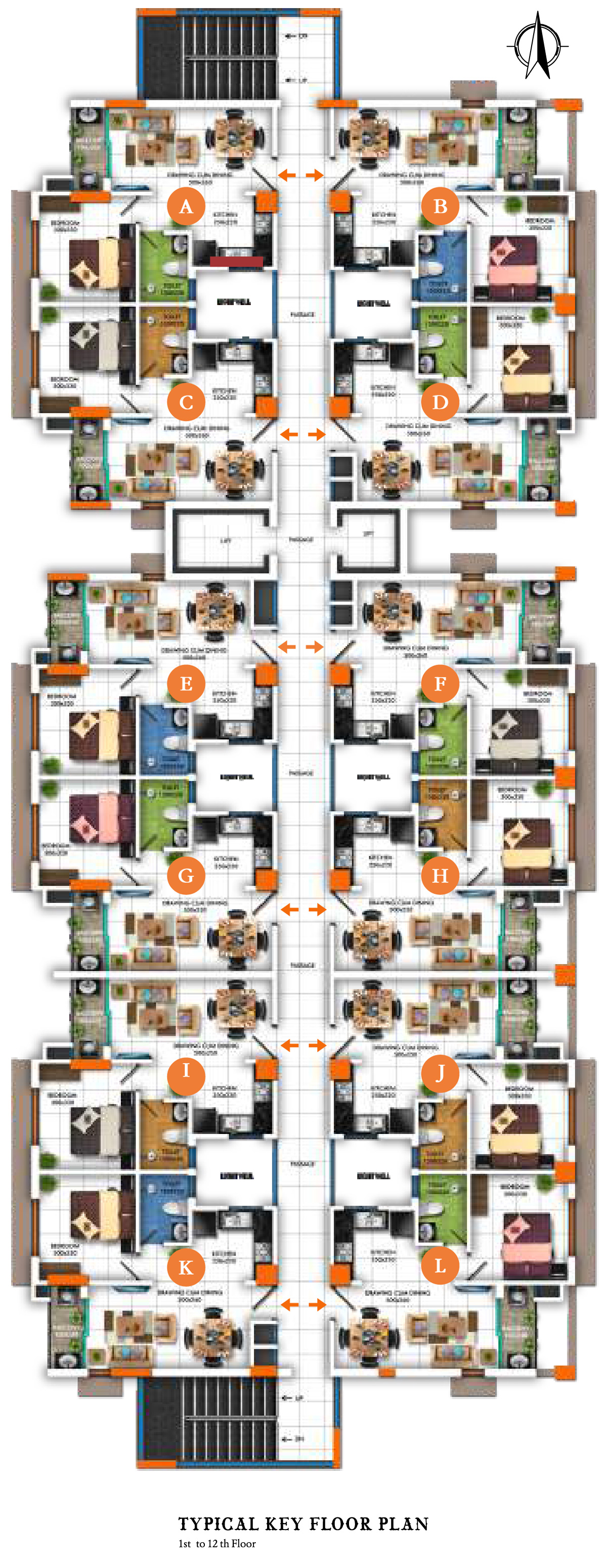 16 Amps 3 nos. plug points per flat including Geyser point in toilet.