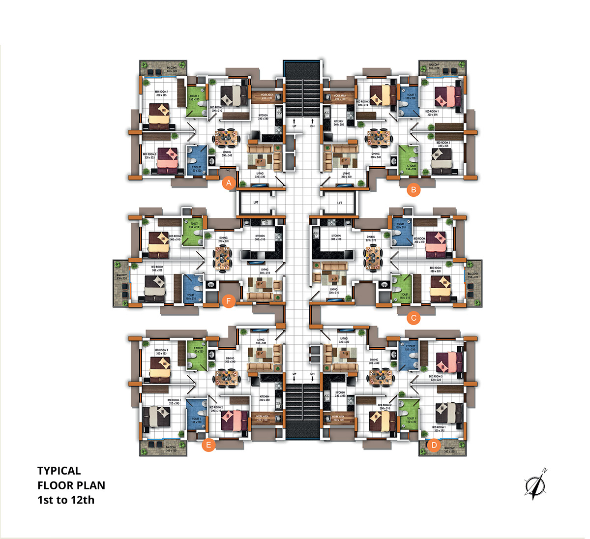 16 Amps plug point- 4 points per 3 BHK flat and 4 points per 2 BHK flat, including Geyser point in all toilets.