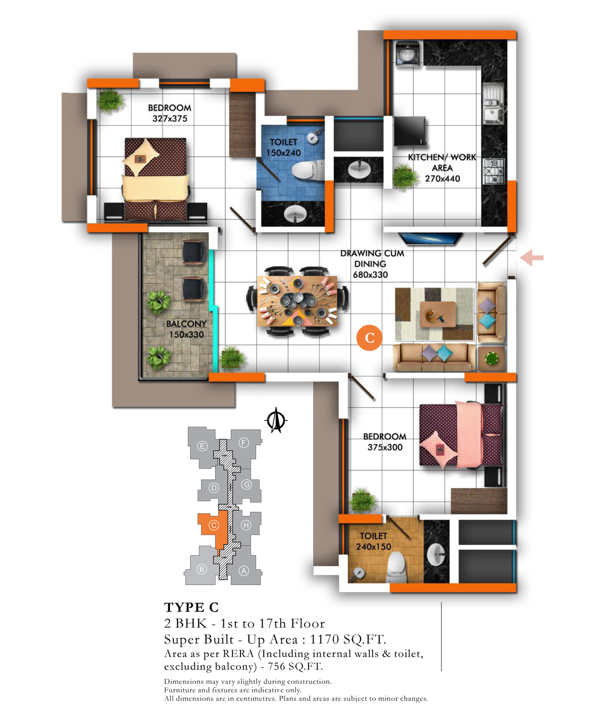 DD Queens Square Type C Luxury Apartments (2&3BHK)