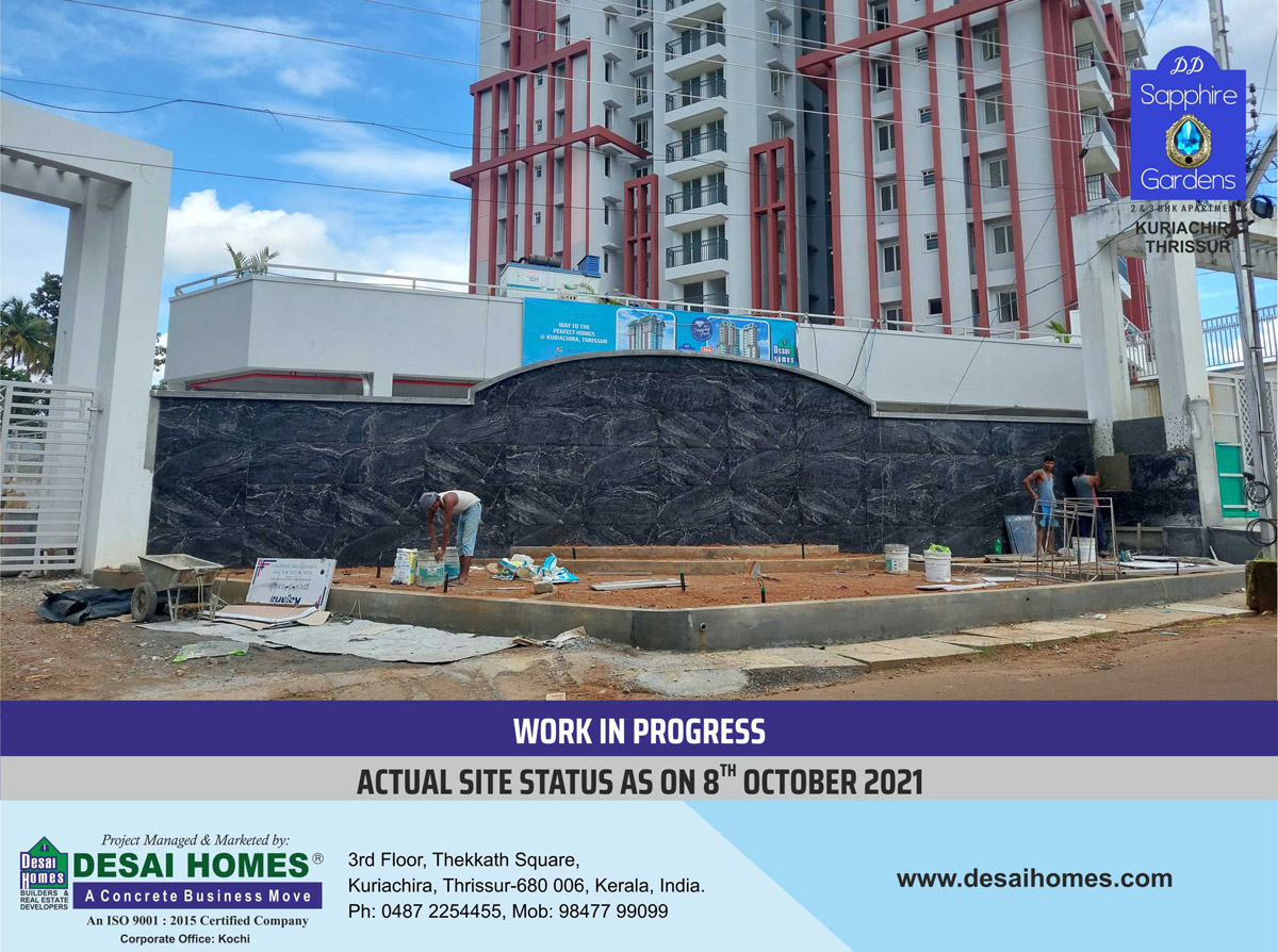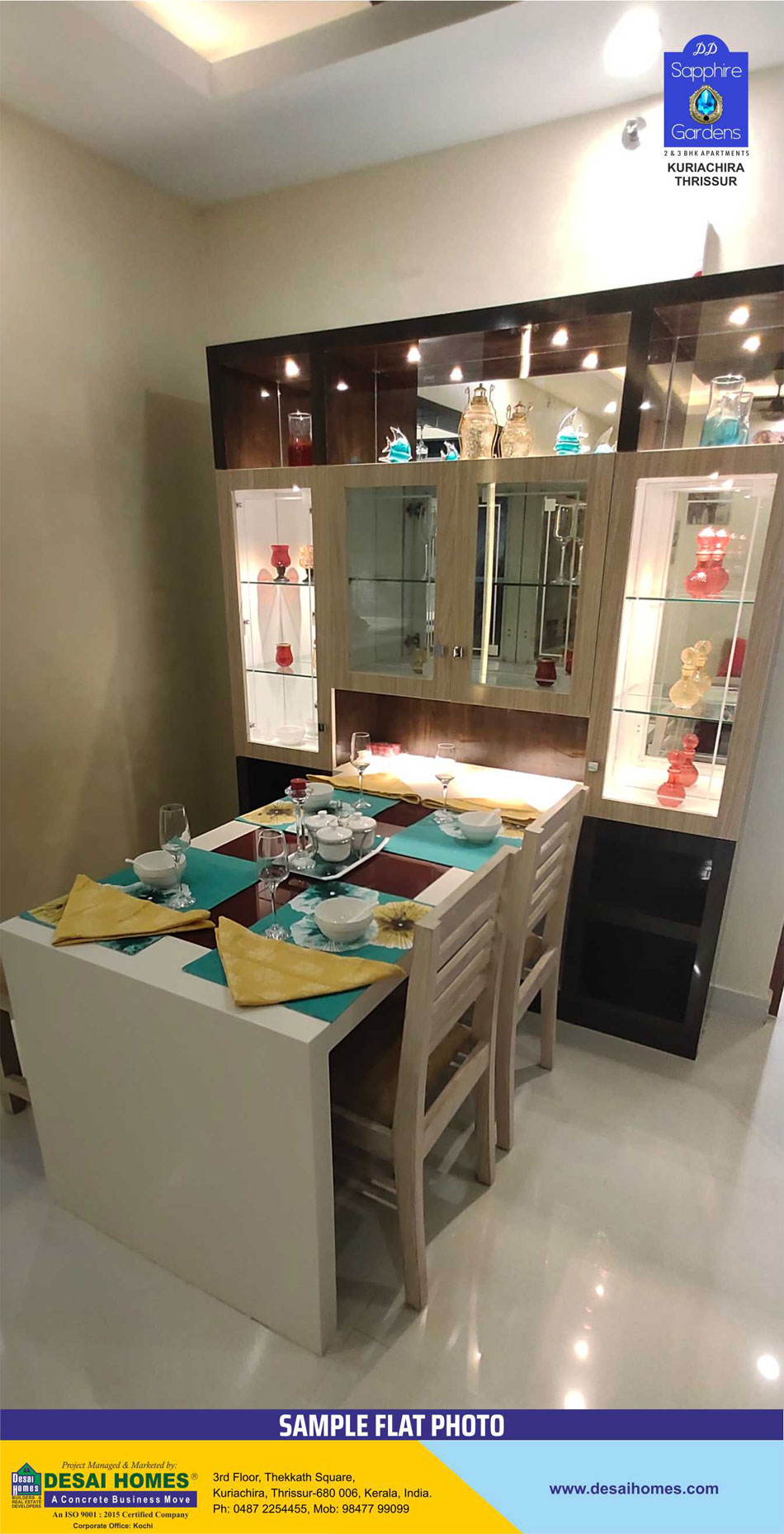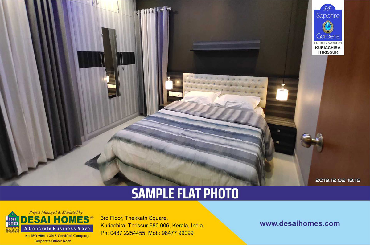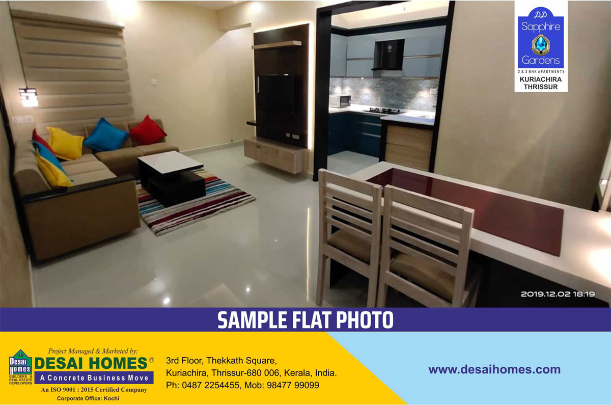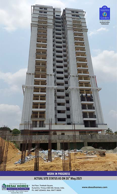 The demand for property in Thrissur has increased considerably and people looking to settle in the city can start rejoicing, as Kerala's most trusted builder Desai Homes is making their grand entry to the city with the launch of 'DD Sapphire Gardens', a majestic manner with 126 apartments, across Basement, Ground floor and 21 floors.