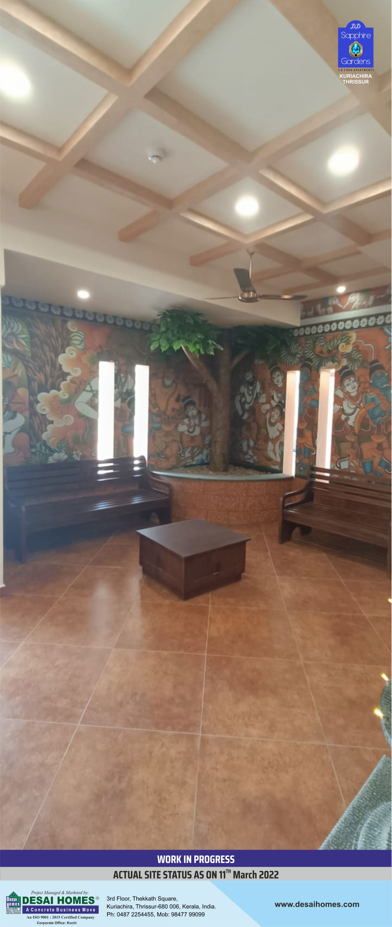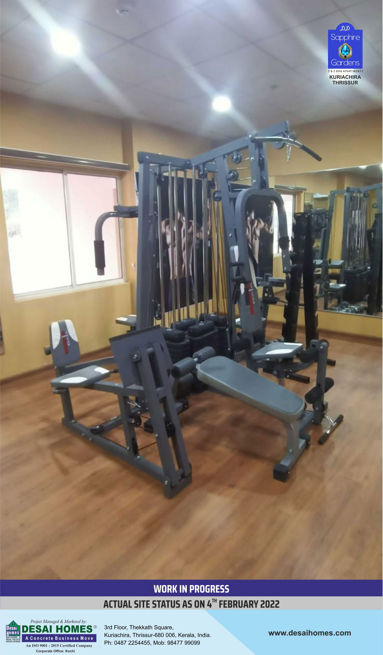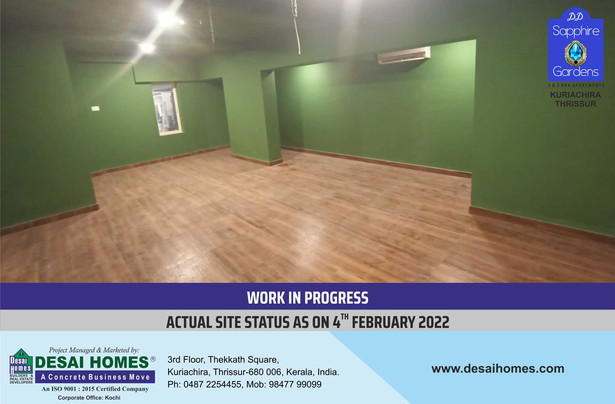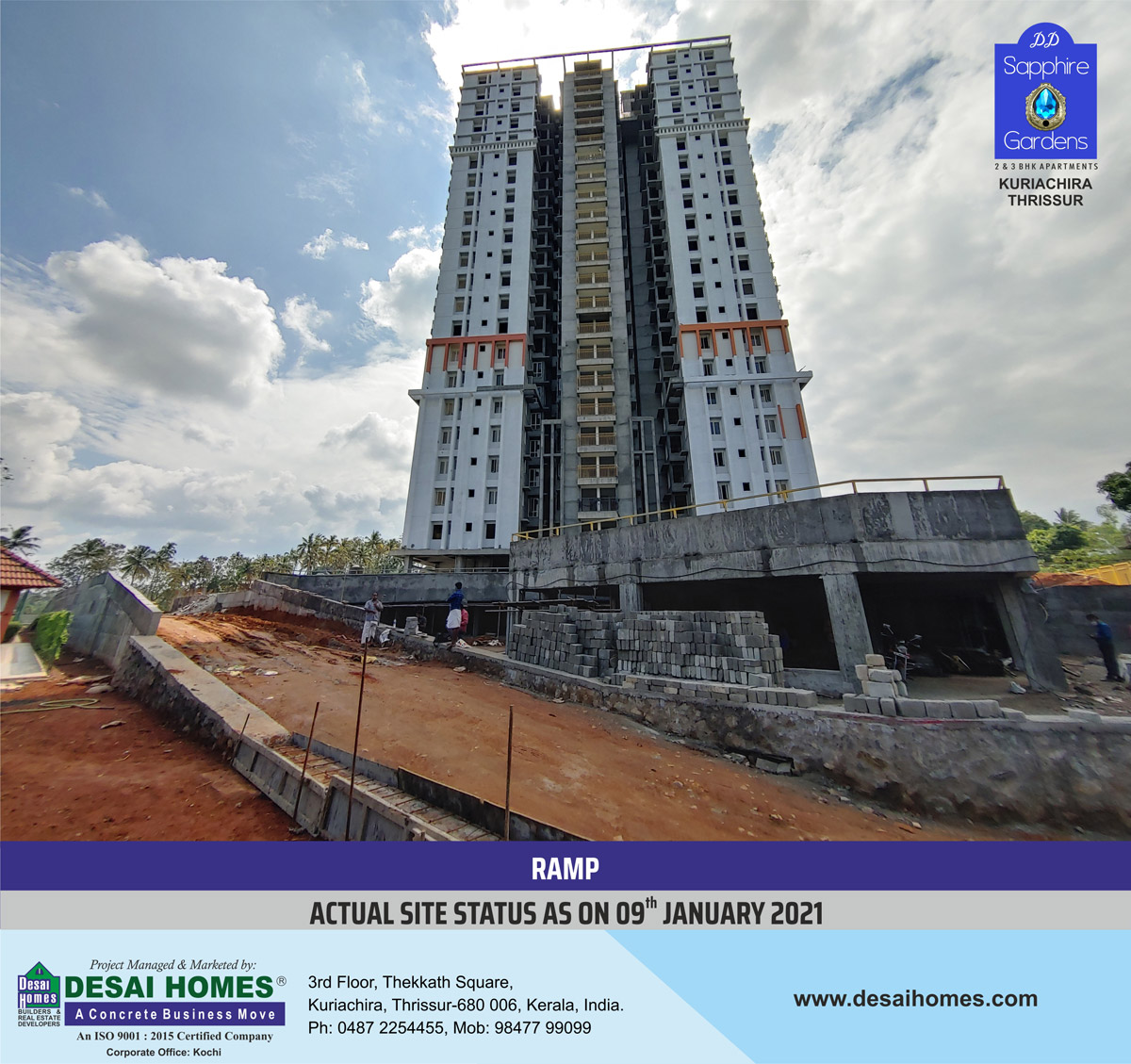 The demand for property in Thrissur has increased considerably and people looking to settle in the city can start rejoicing, as Kerala's most trusted builder Desai Homes is making their grand entry to the city with the launch of 'DD Sapphire Gardens', a majestic manner with 126 apartments, across Basement, Ground floor and 21 floors.