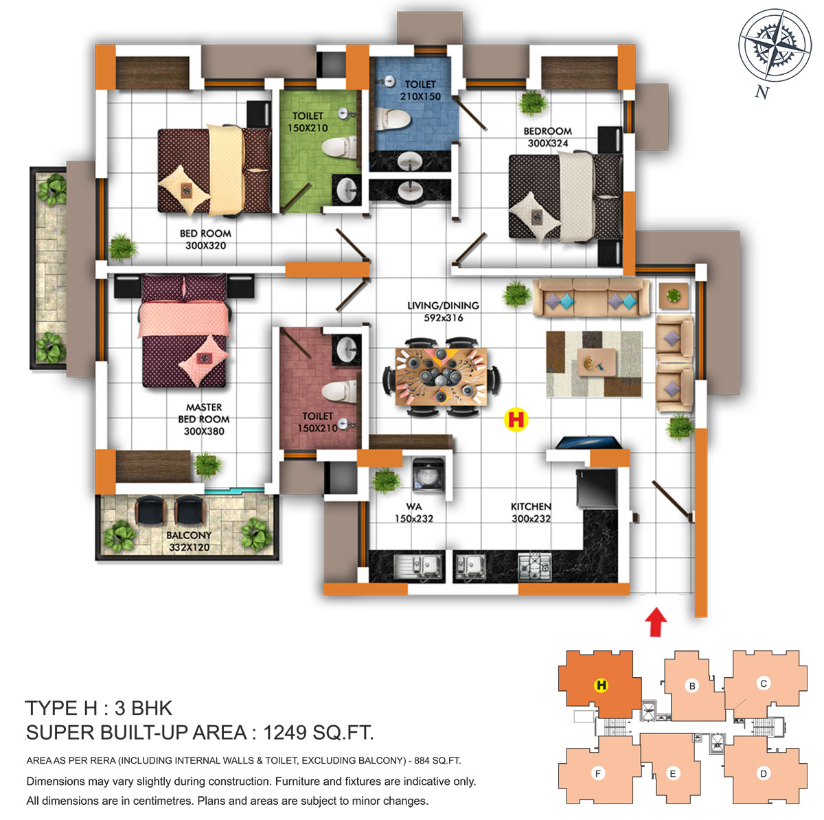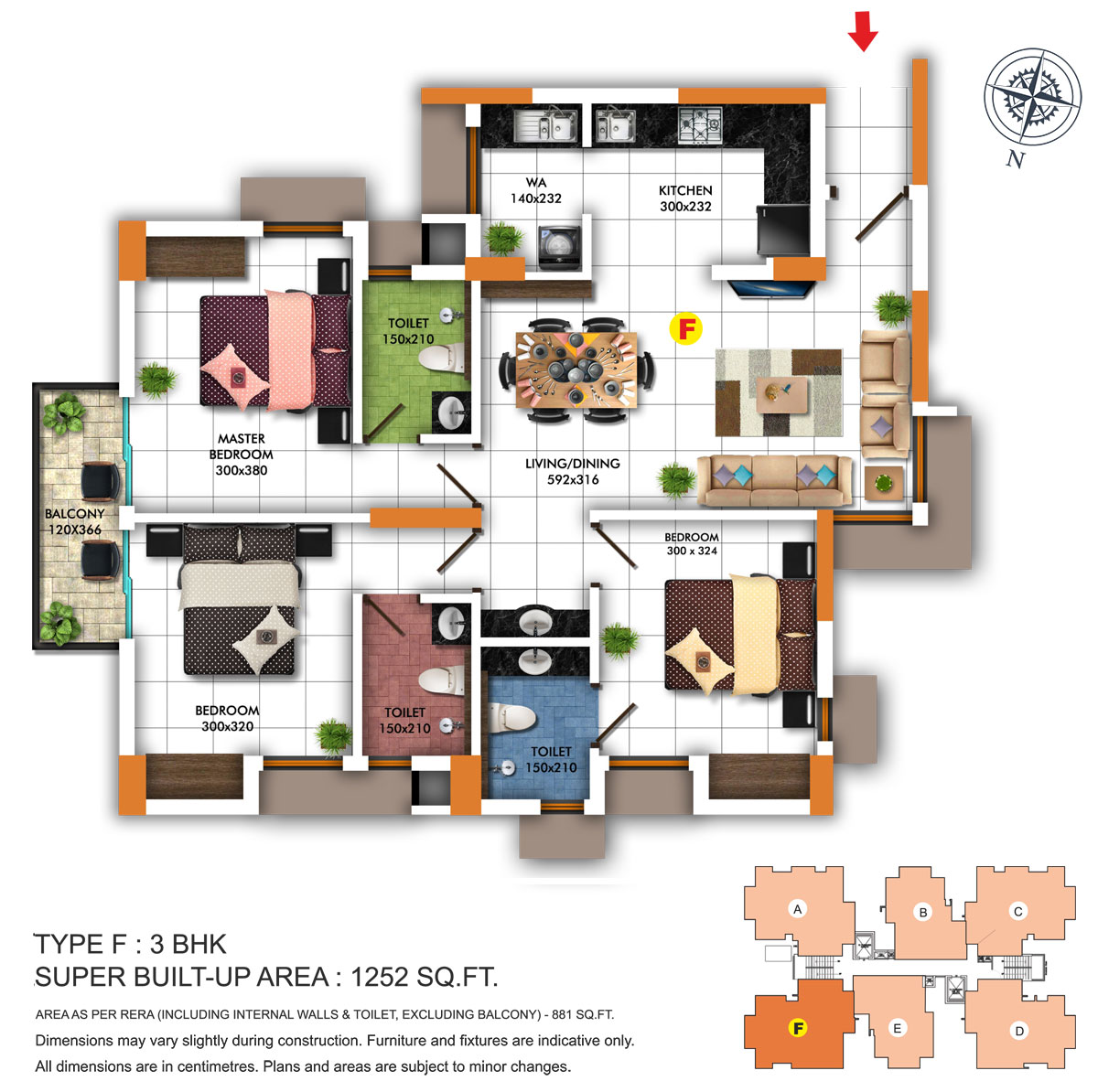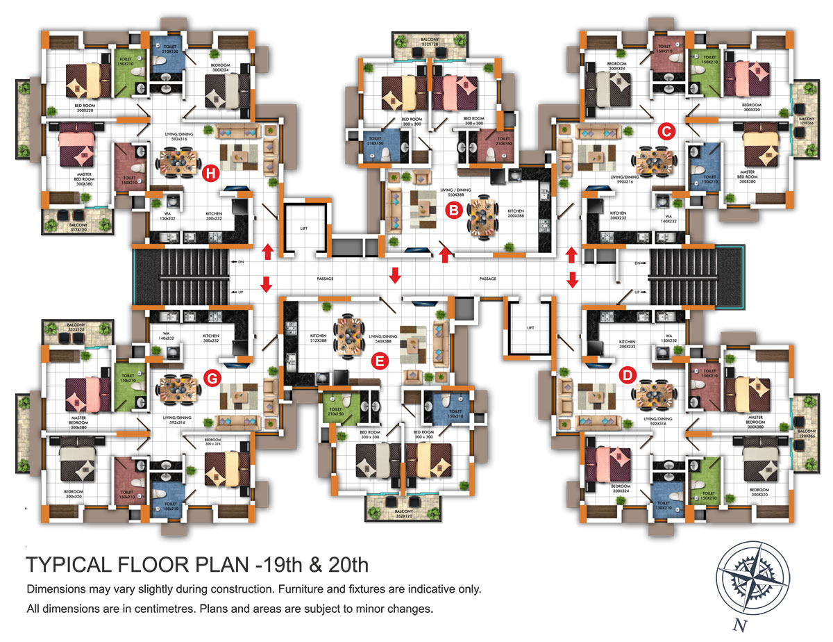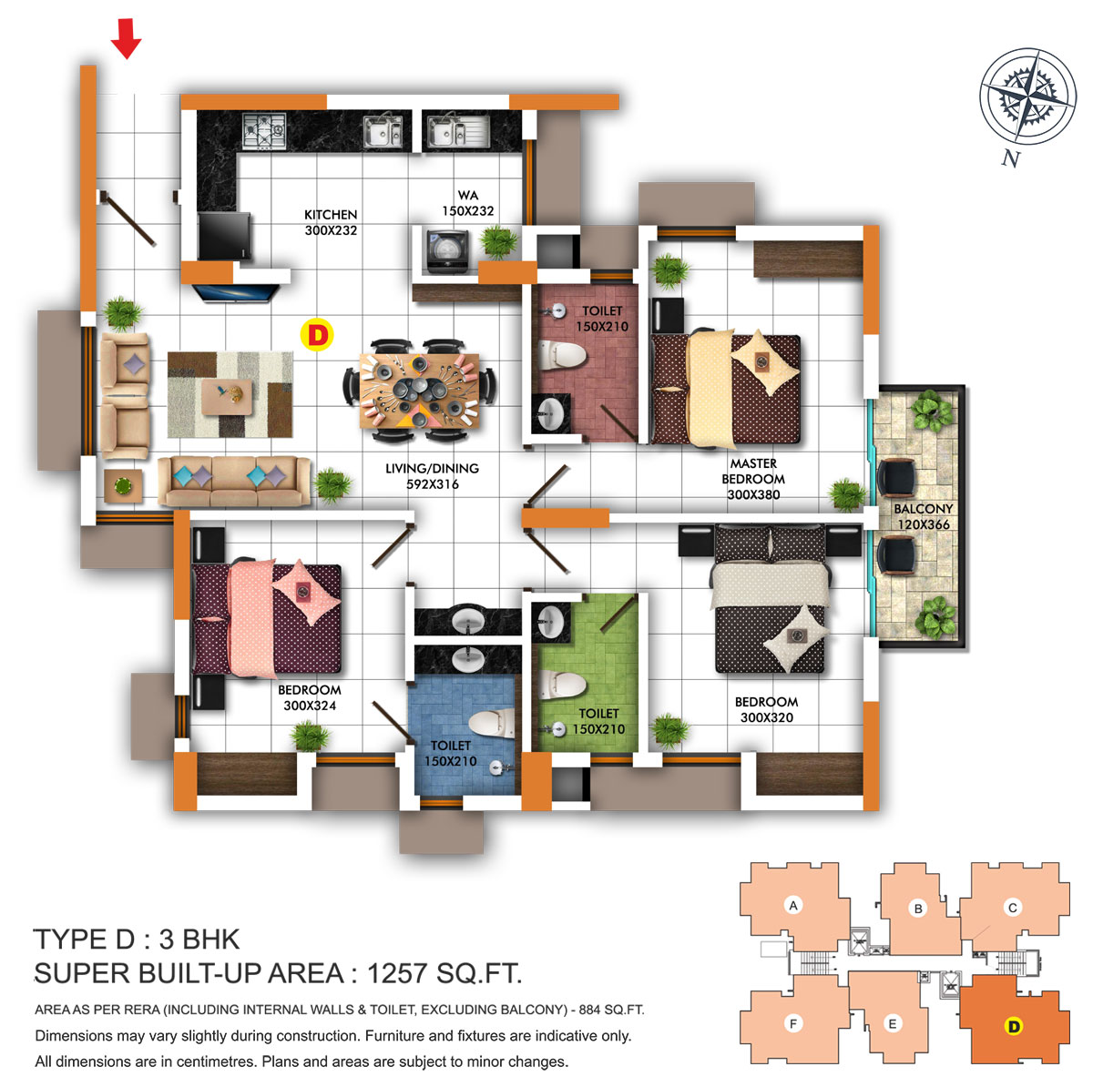 16 Amps plug point- 4 points per 3 BHK flat and 4 points per 2 BHK flat, including Geyser point in all toilets.