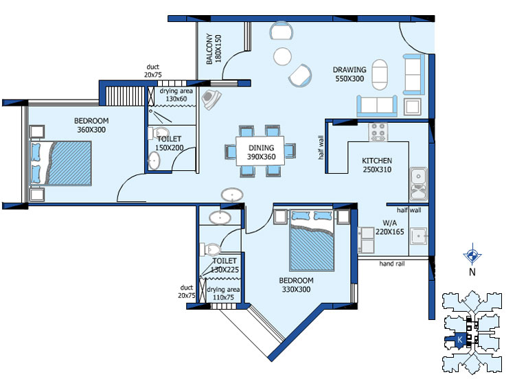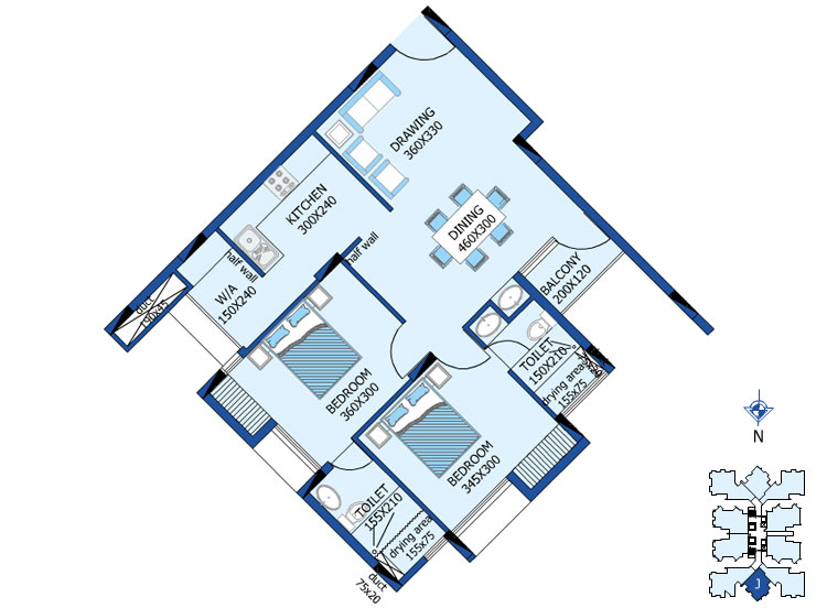 2 points in 3 BHK & 1 point in 2 BHK flats (Additional AC Points will be charged extra)