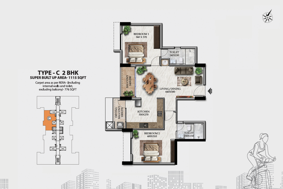2 points bedrooms for 3bhk and 1 point bedroom for 2bhk flats ( Additional AC points will be charged extra ).
