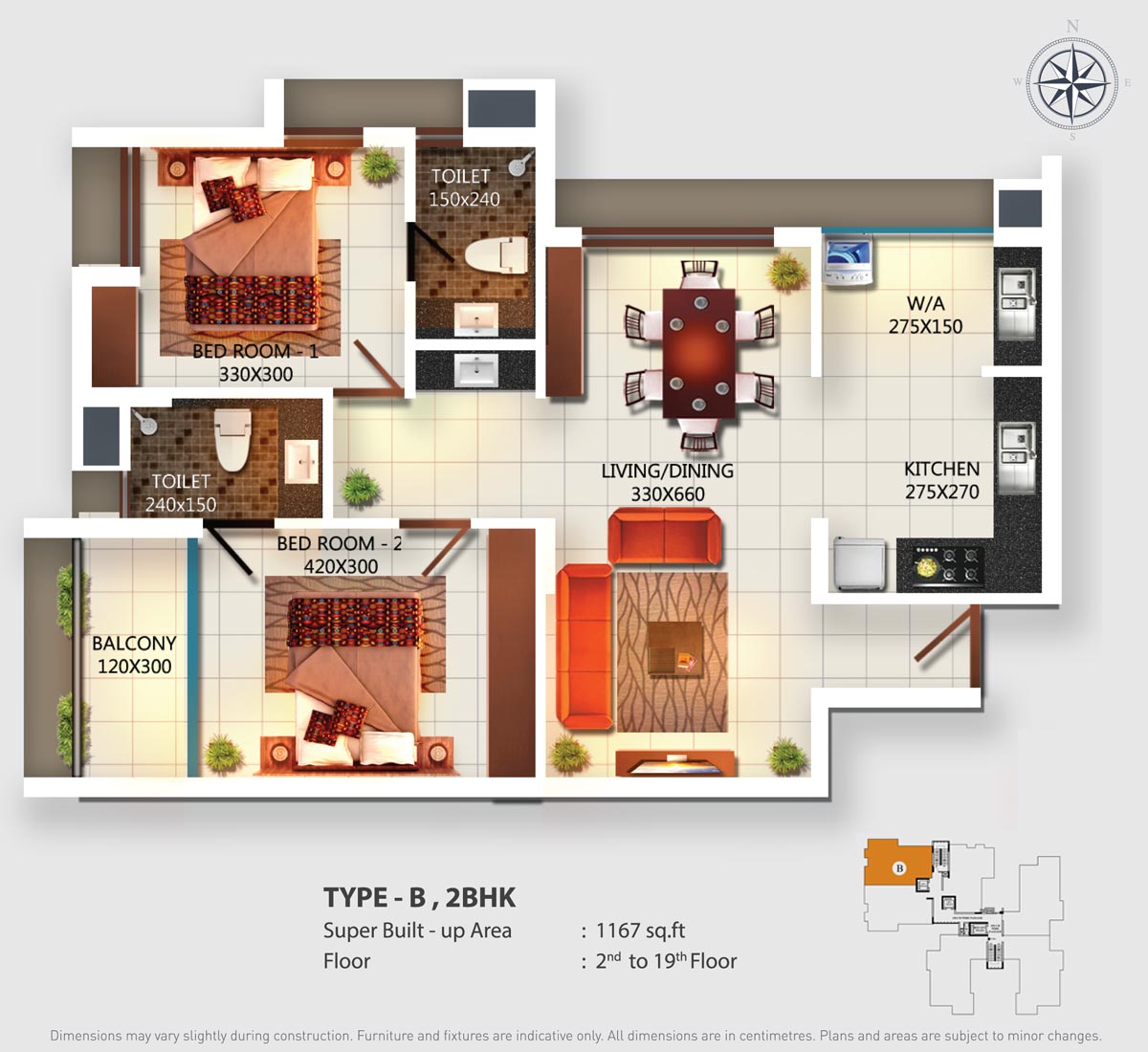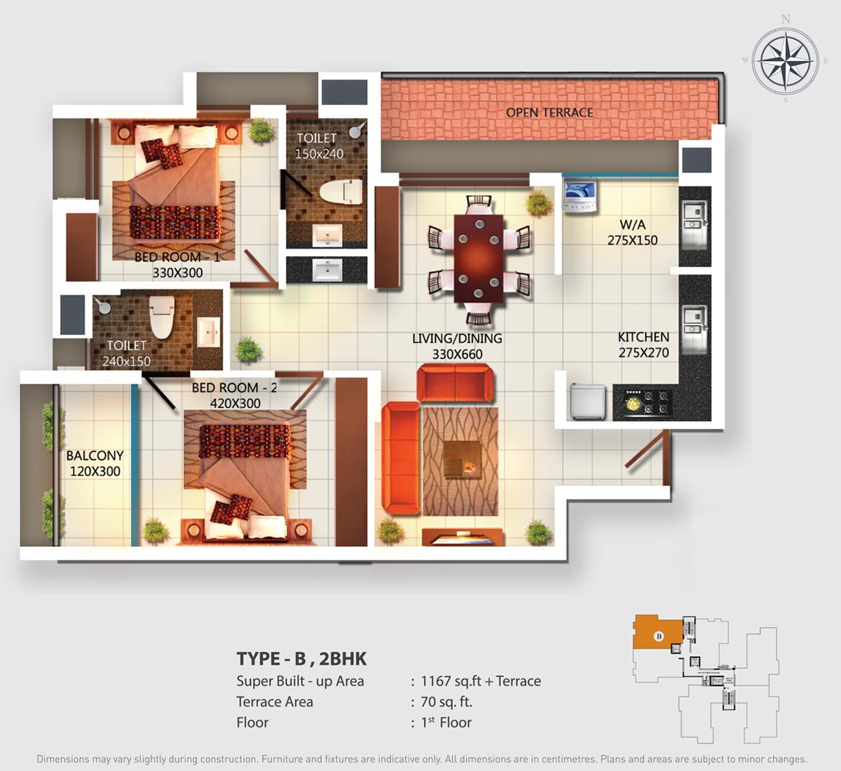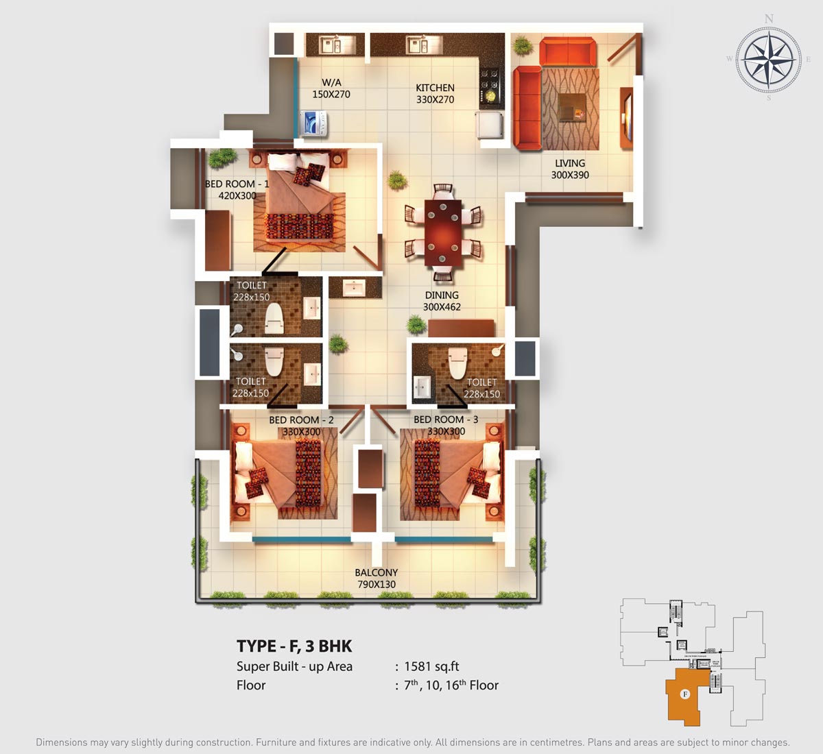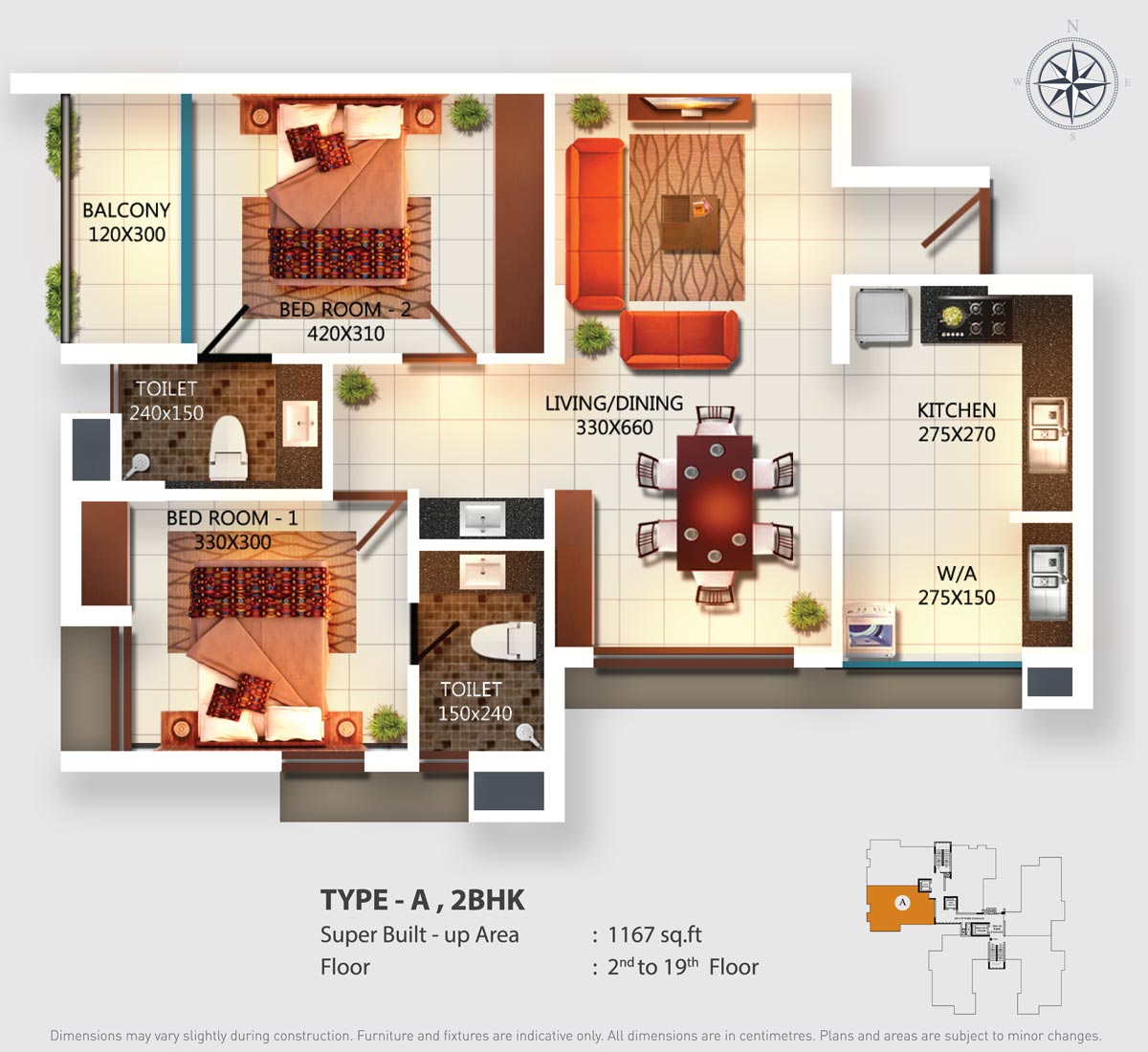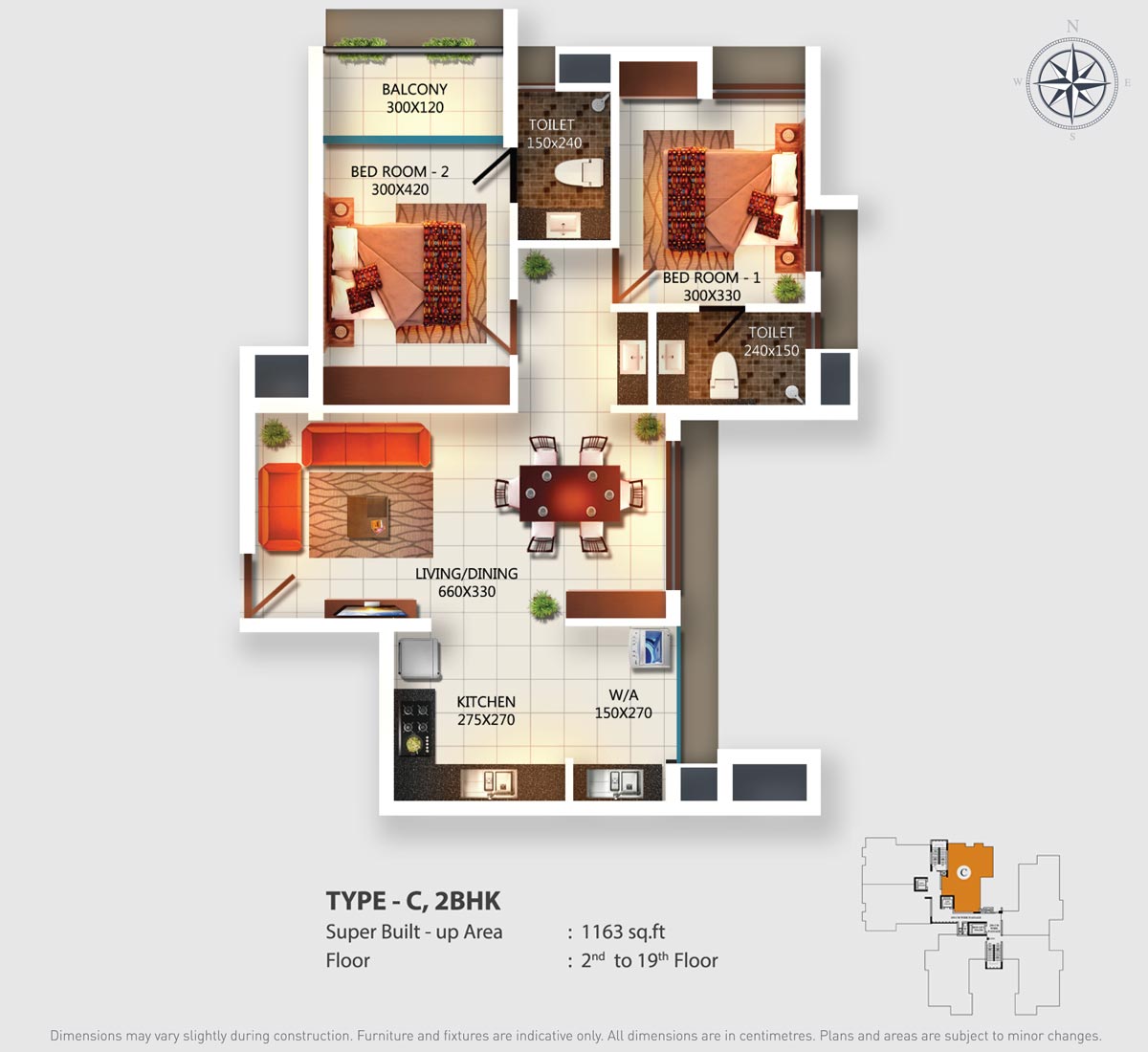 Fully Vitrified tiles except toilet and balconies.