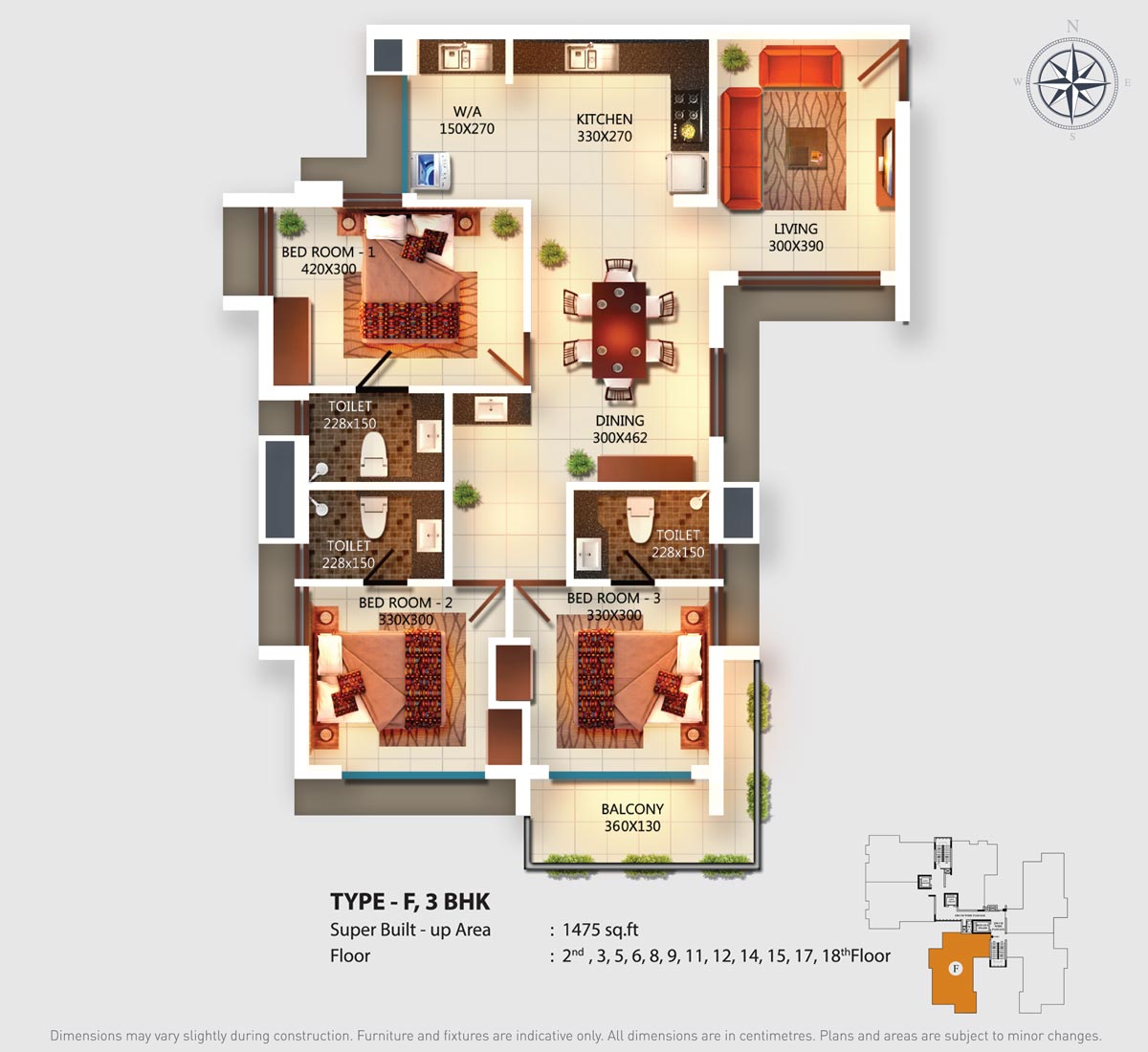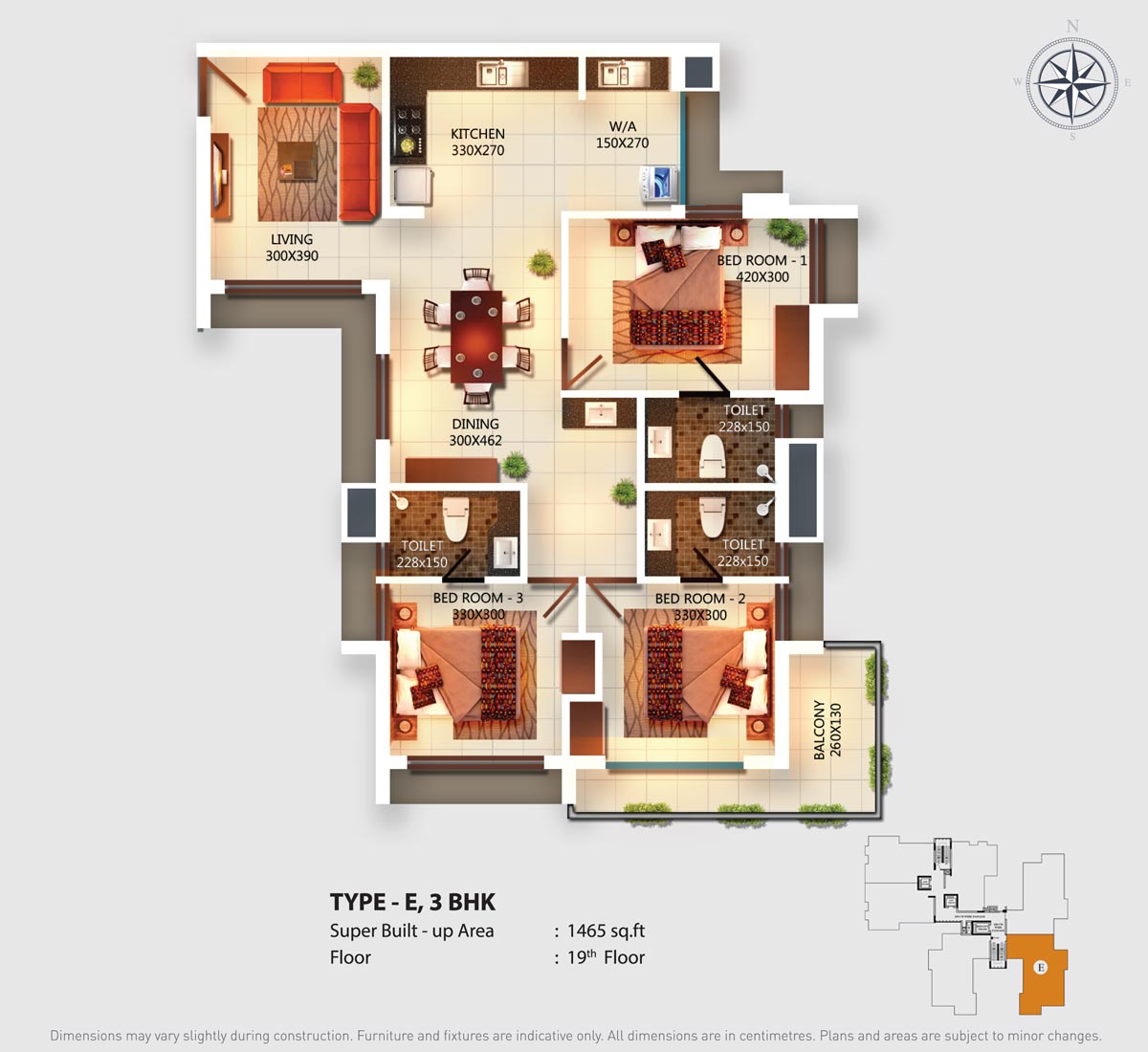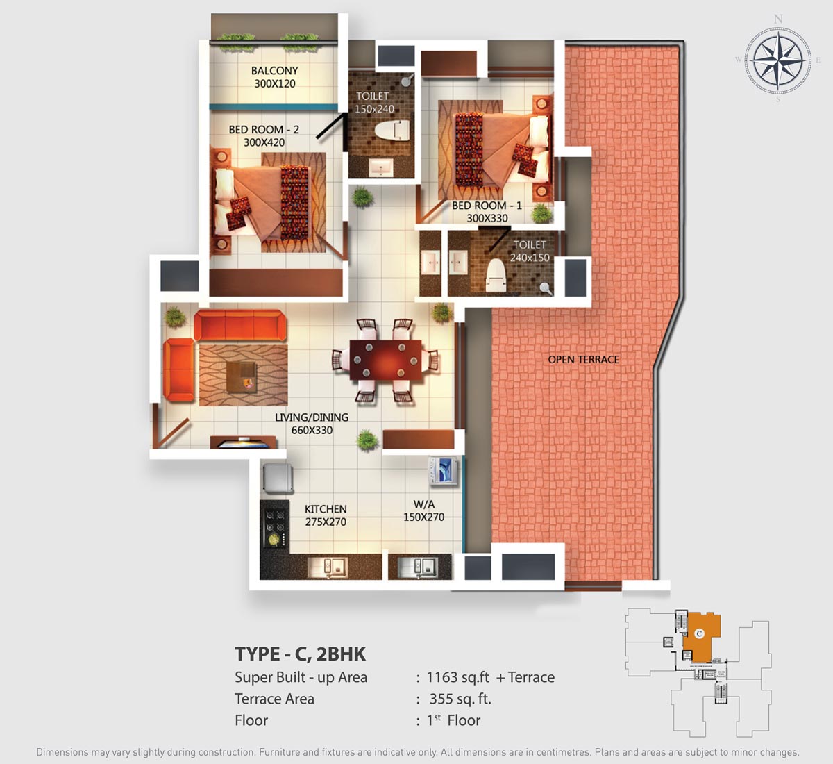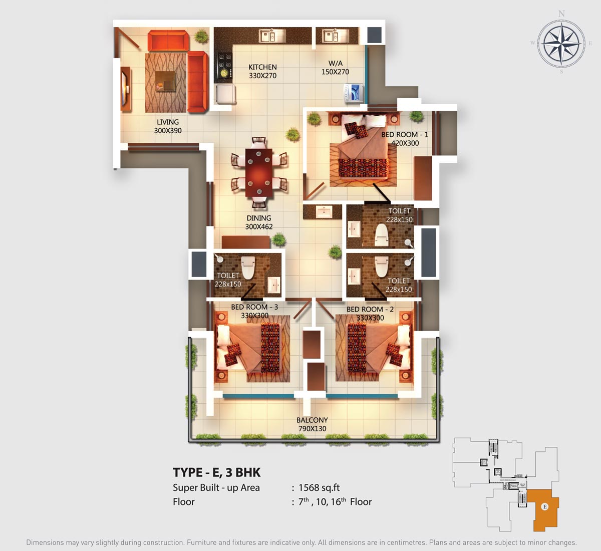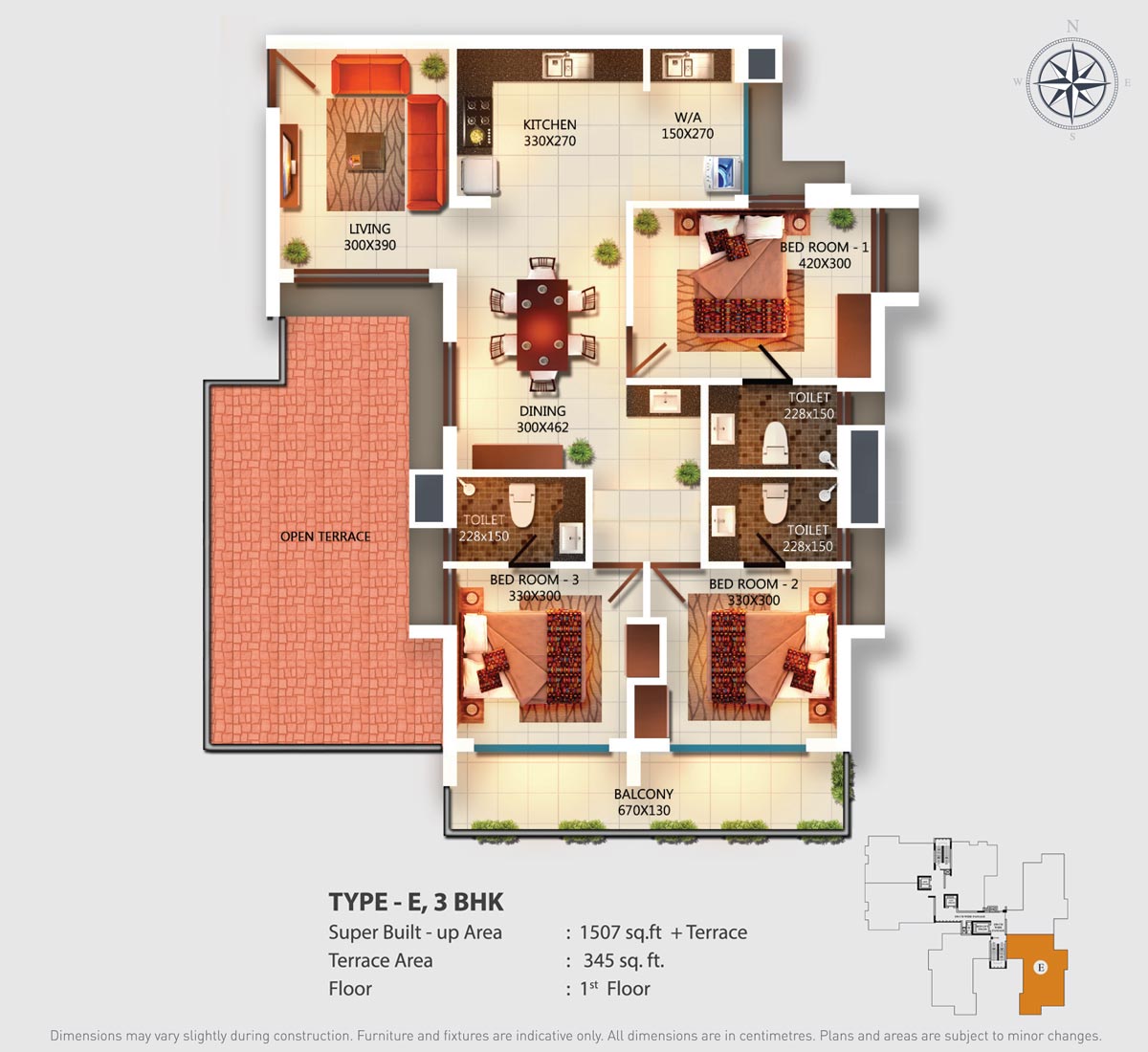 Fully Vitrified tiles except toilet and balconies.