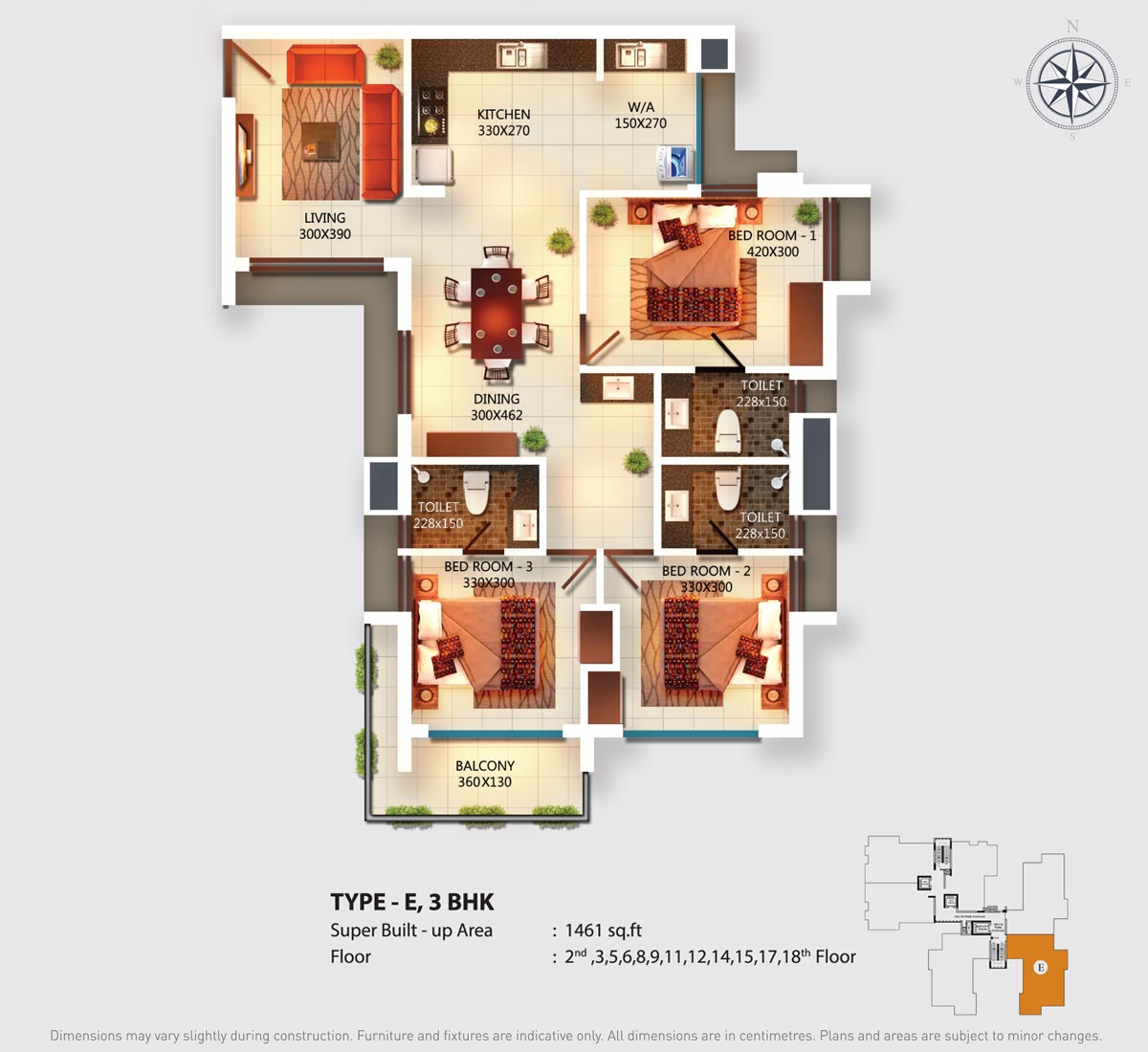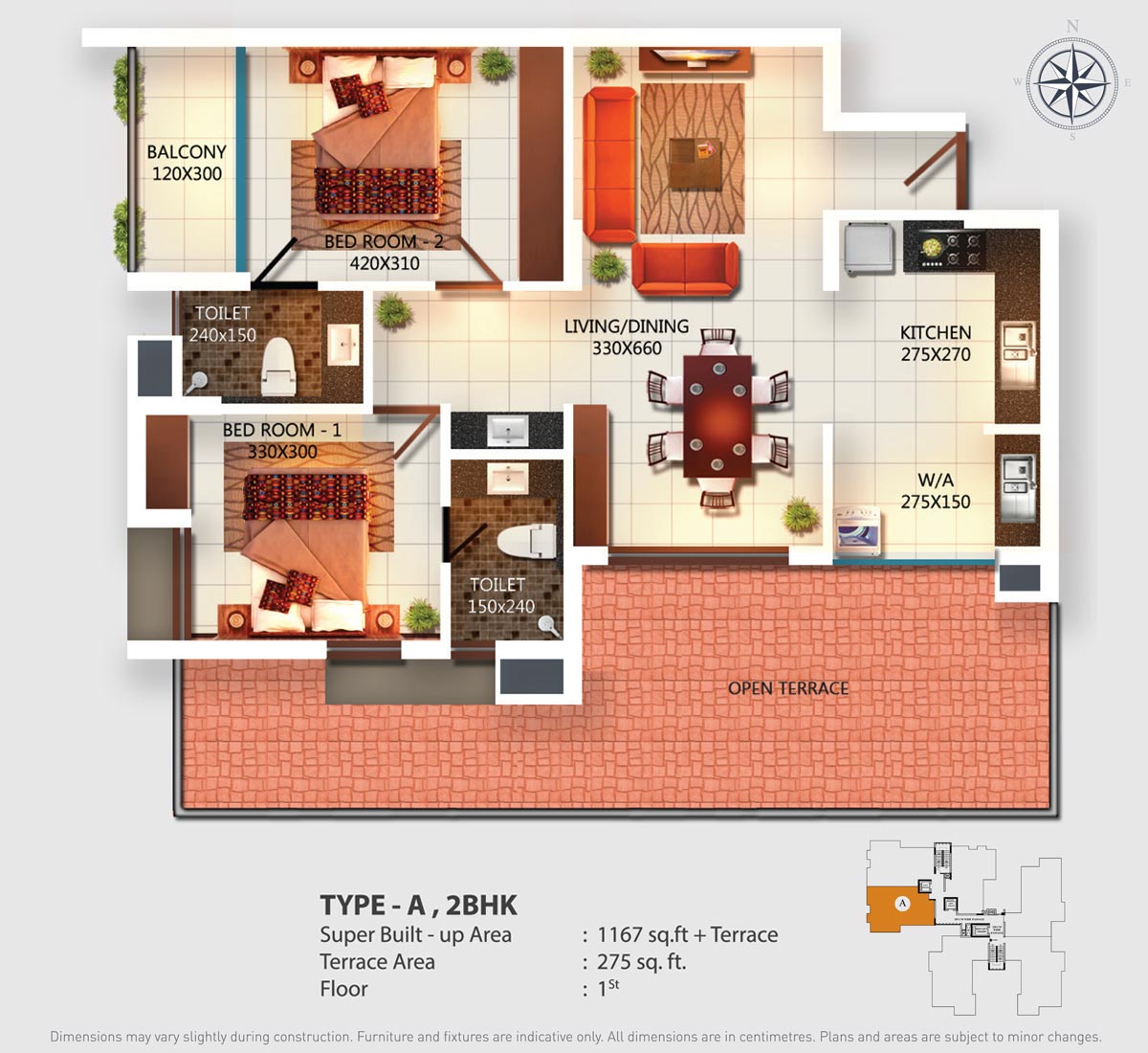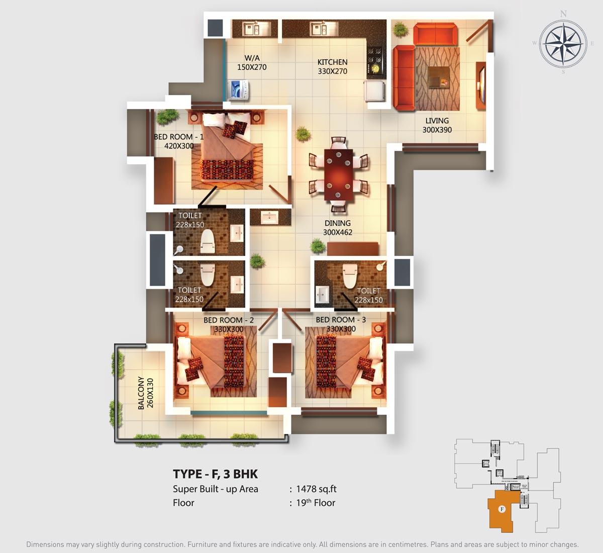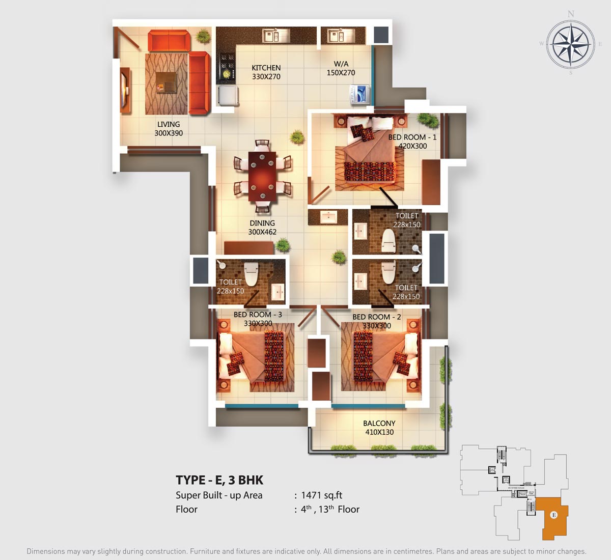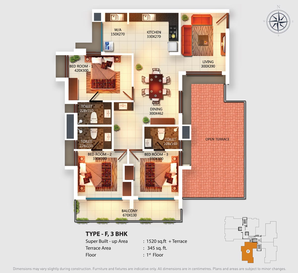 Fully Vitrified tiles except toilet and balconies.