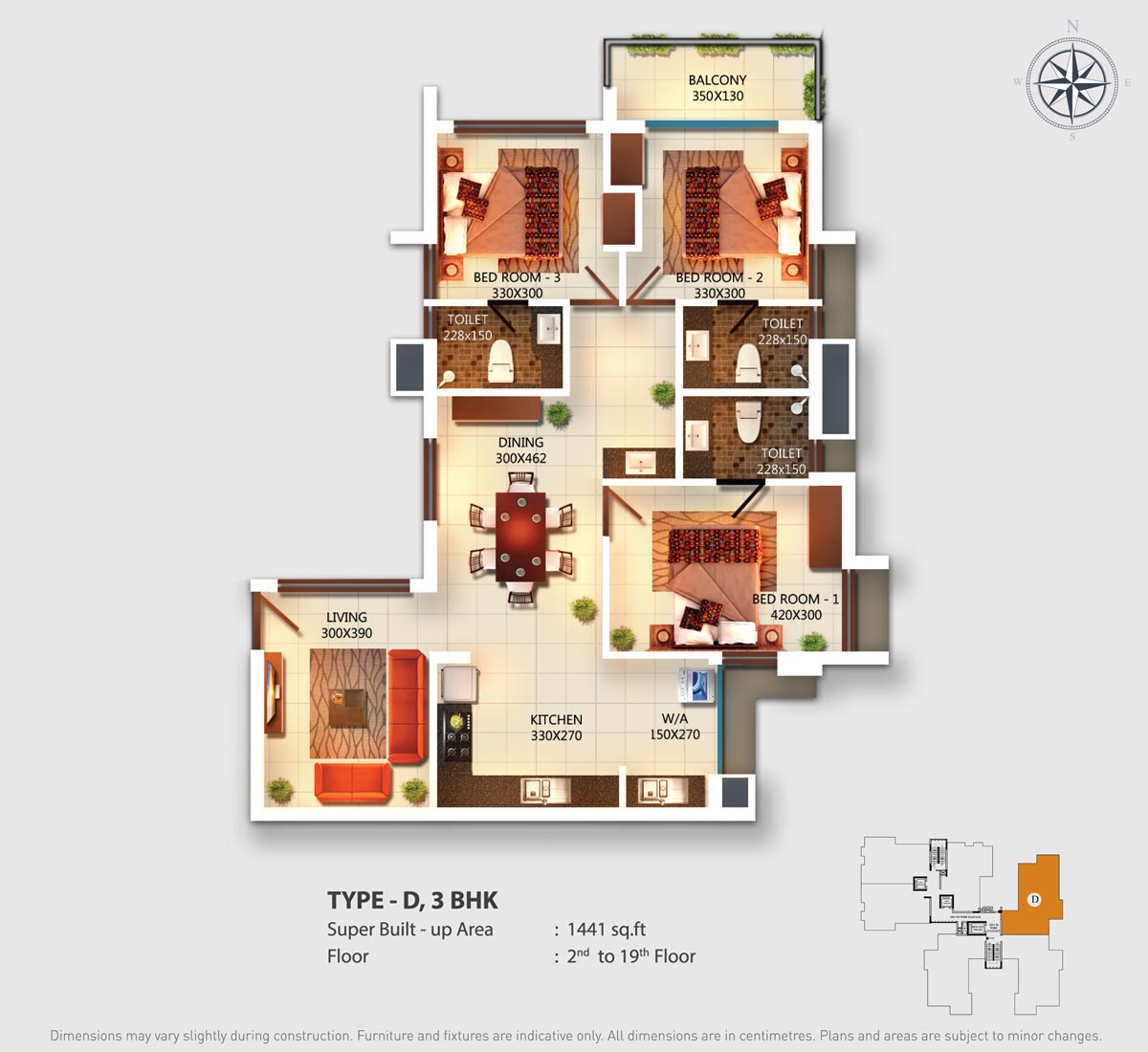 16 Amps plug point - 5 points per 3 BHK flat and 4 points per 2 BHK flat, including Geyser point in all toilets.(Additional Electrical points on request will be charged extra).