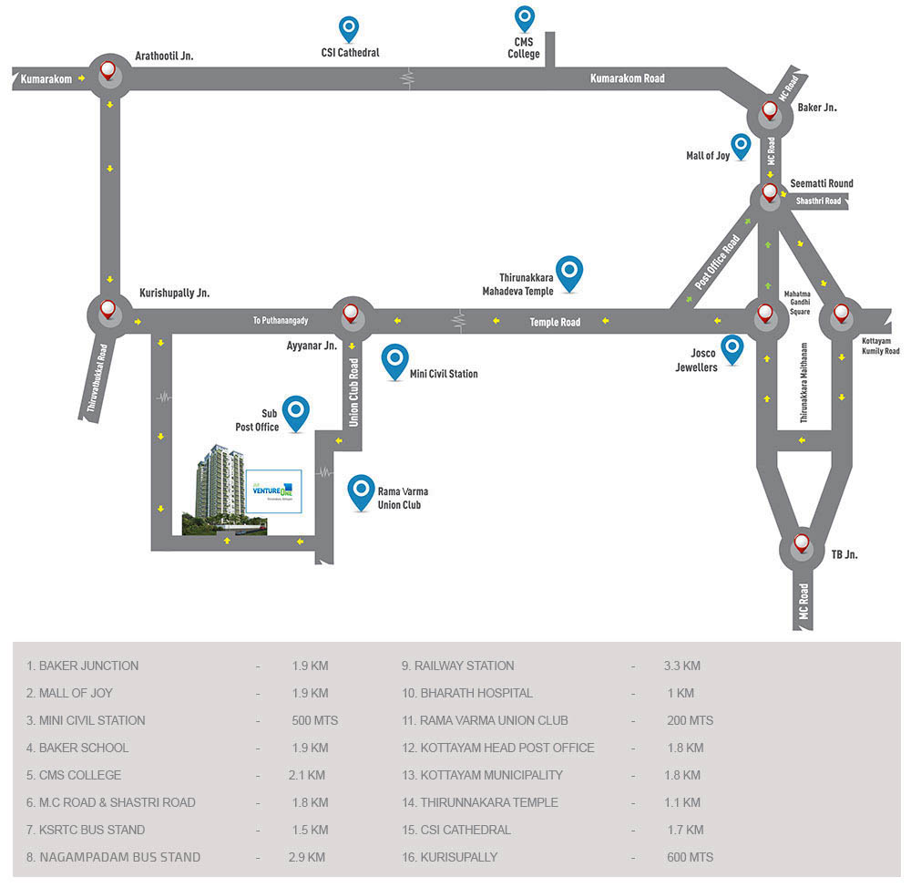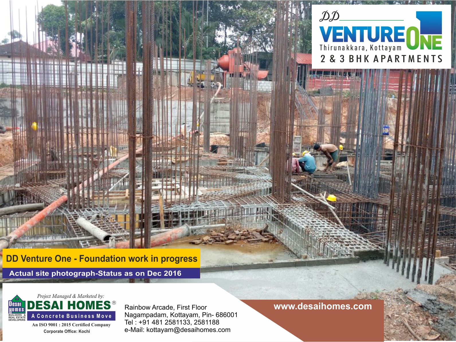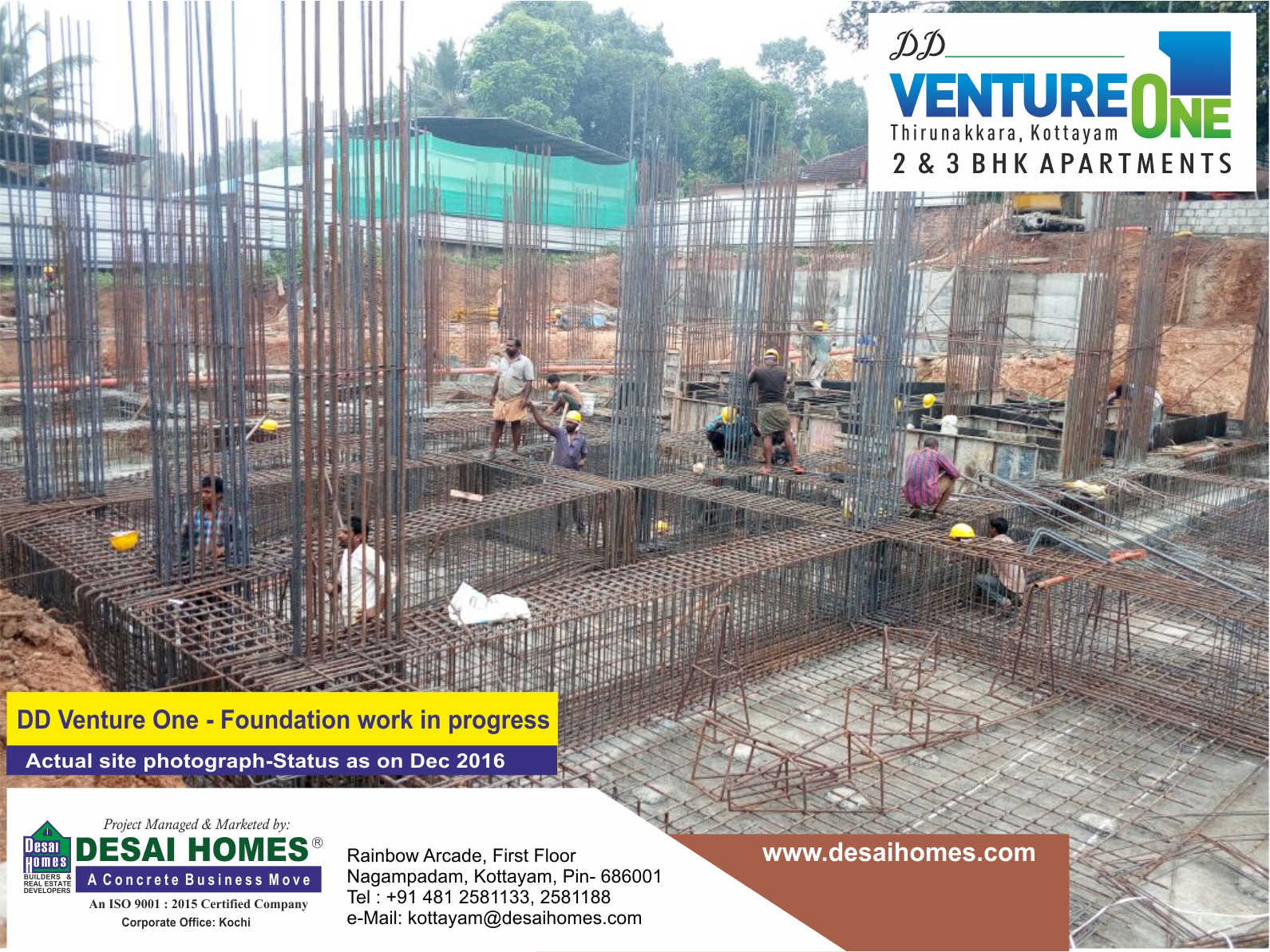 DD Venture One, the first among a host of projects coming up from Desai Homes in Kottayam is strategically located at Thirunakkara, very much in the heart of the bustling town. The multi-storied project offers luxury apartments in Kottayam comprising an array of both 2 & 3 BHK apartment types. Standing tall amidst the crowd, its beauty is embraced by surrounding atmosphere. The unique location with proximity to Schools, Hospitals, Shopping Malls, Head Post Office, the Mini Civil Station, Municipality, Union Club, places of worship surrounds the area with divine ambiance as well. All these are what makes DD Venture One, such an enviable address to own. It is no wonder that the project has received widespread recognition with its principal location, serene ambiance, efficient space management and impeccable craftsmanship. DD Venture One is spruced up with all the amenities that befit luxurious city living. Our apartment floorings are paved with fully vitrified tiles of superior quality. Provided facilities for swimming pools, which assure you the relaxing and chilling experience in between the hectic life. Like all DD projects, Venture One inherits the true legacy of Desai Homes building expertise and methodology in its soul. The legacy that was built on dedication, perseverance and trust across three decades. In addition to that, it utilizes the benefits of in-house construction and scale of operation to ensure our customers get the benefit of highly competitive pricing. Luxurious yet light on your pockets. DD Venture One, Kottayam is not just an address but aLANDMARK.Come fulfill your desire to own a prime dwelling in the heart of Kottayam.