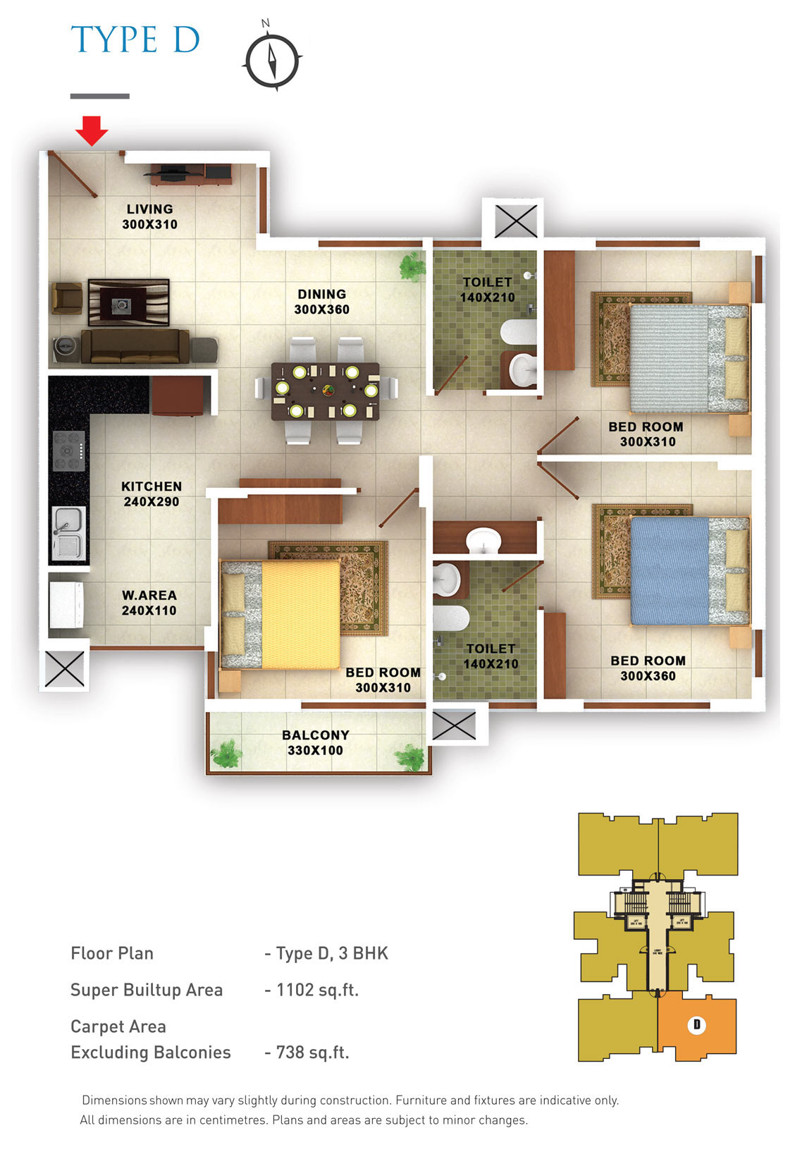 16 Amps plug point- 5 points per 3 BHK flat and 4 points per 2 BHK flat, including Geyser point in all toilets. (Additional Electrical points on request will be charged extra).